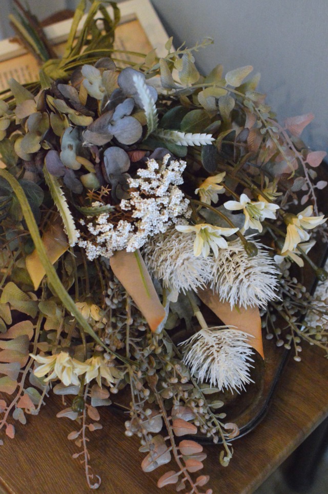 シックな雰囲気を醸し出すアンティークカラースワッグ。 渋めのグリーンをベースに紅葉したような赤茶やダークな黒っぽいカラーを合わせました。差し色でアイボリーを入れることで、暗くなり過ぎず、落ち着きのあるお部屋を演出し、洗練された大人の空間を創り出します。 アーティフィシャルフラワーのみを使用し、お水不要で長期間美しさを楽しむ事が出来ます。 ひとつひとつ手作りしておりますので、同じ物はございません。大切な方への特別な贈り物として、自分へのご褒美として、ご利用下さい。 ※こちらはギフトBOXはございません。ビニールでのラッピング(無料)を承りますので、ご入り用の方はオプションよりお選び下さい。 ※直射日光や高温多湿を避け、風通しの良い場所に飾ってお楽しみ下さい。 ※ 本体サイズ 長さ41㎝×横幅30㎝×高さ15㎝ ※100サイズの宅配便にてお送り致します。 ご購入前に必ずinformationのご確認お願い致します。 #フラワーギフト #アーティフィシャルフラワー(造花) #プリザーブドフラワー #ドライフラワー #武蔵野市花屋