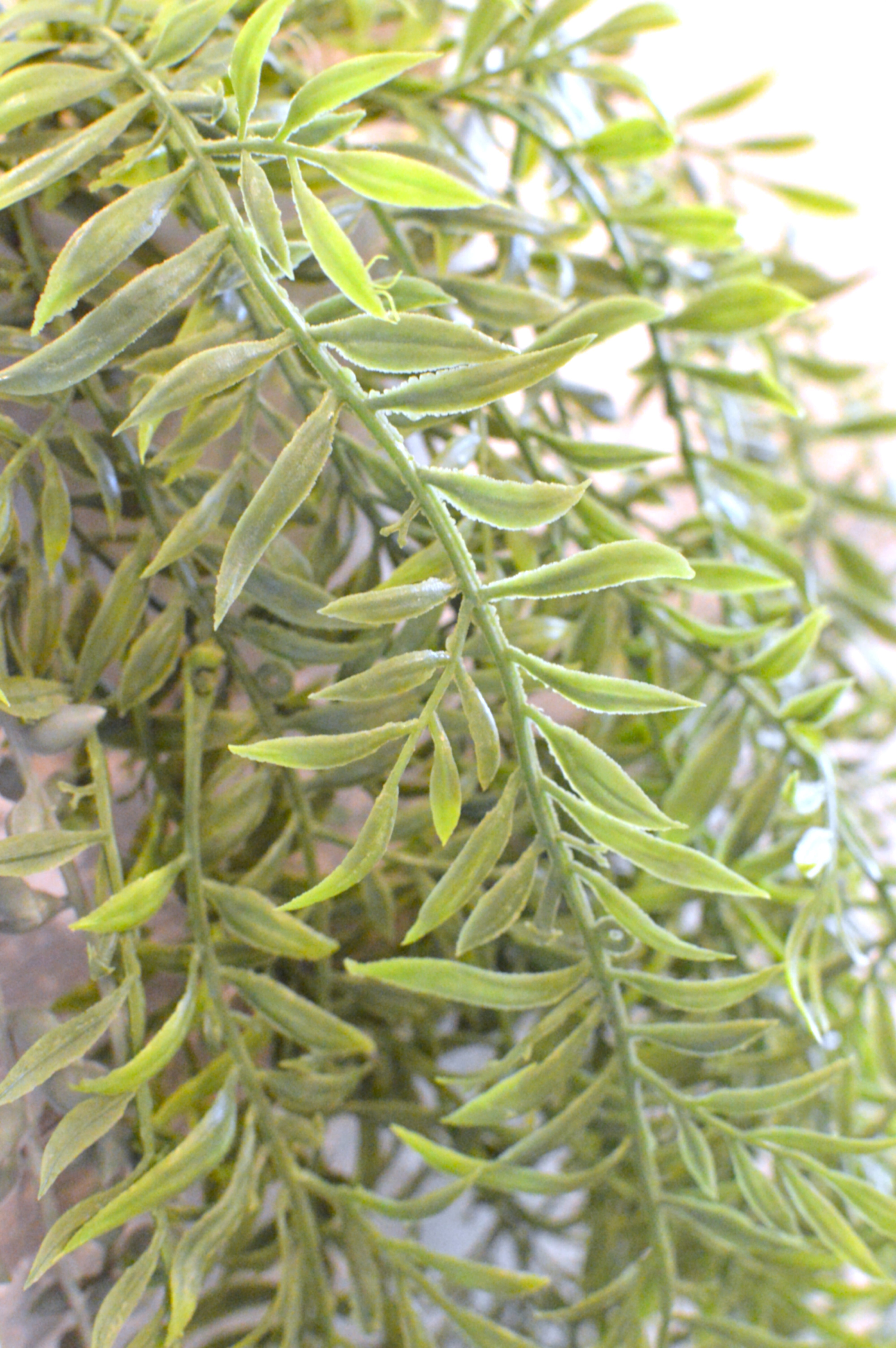 シダ植物の美しさを再現しており、長く垂れ下がったデザインですので、高い位置に飾ったり、ハンギングで吊るしても素敵です。様々なインテリアにマッチしナチュラルな雰囲気を提供します。手間いらずでお手入れもお水も不要。枯れることもなく、長期間美しさを楽しむことができ、忙しい日常の中でも手軽に緑の癒しを取り入れられます。