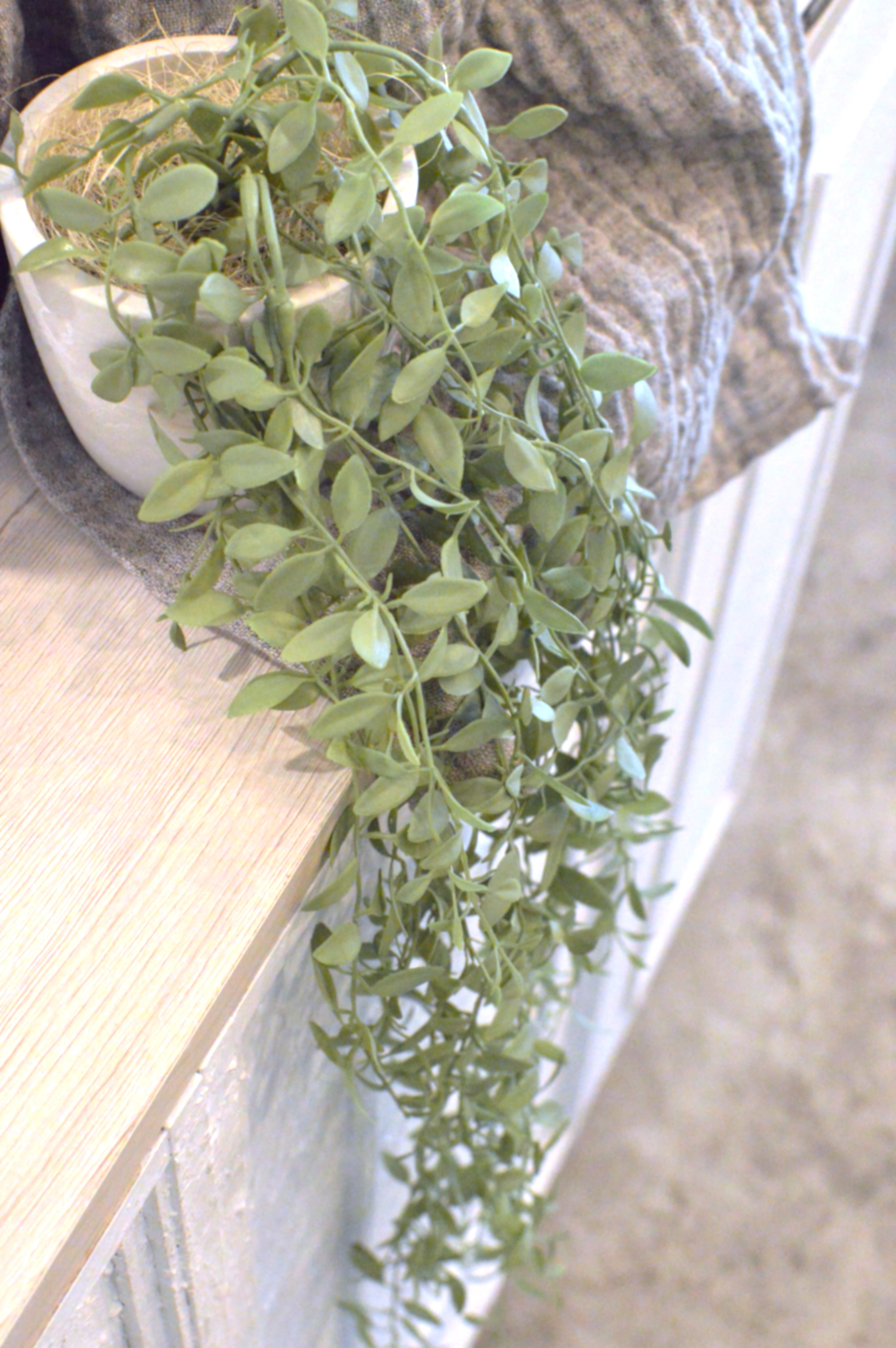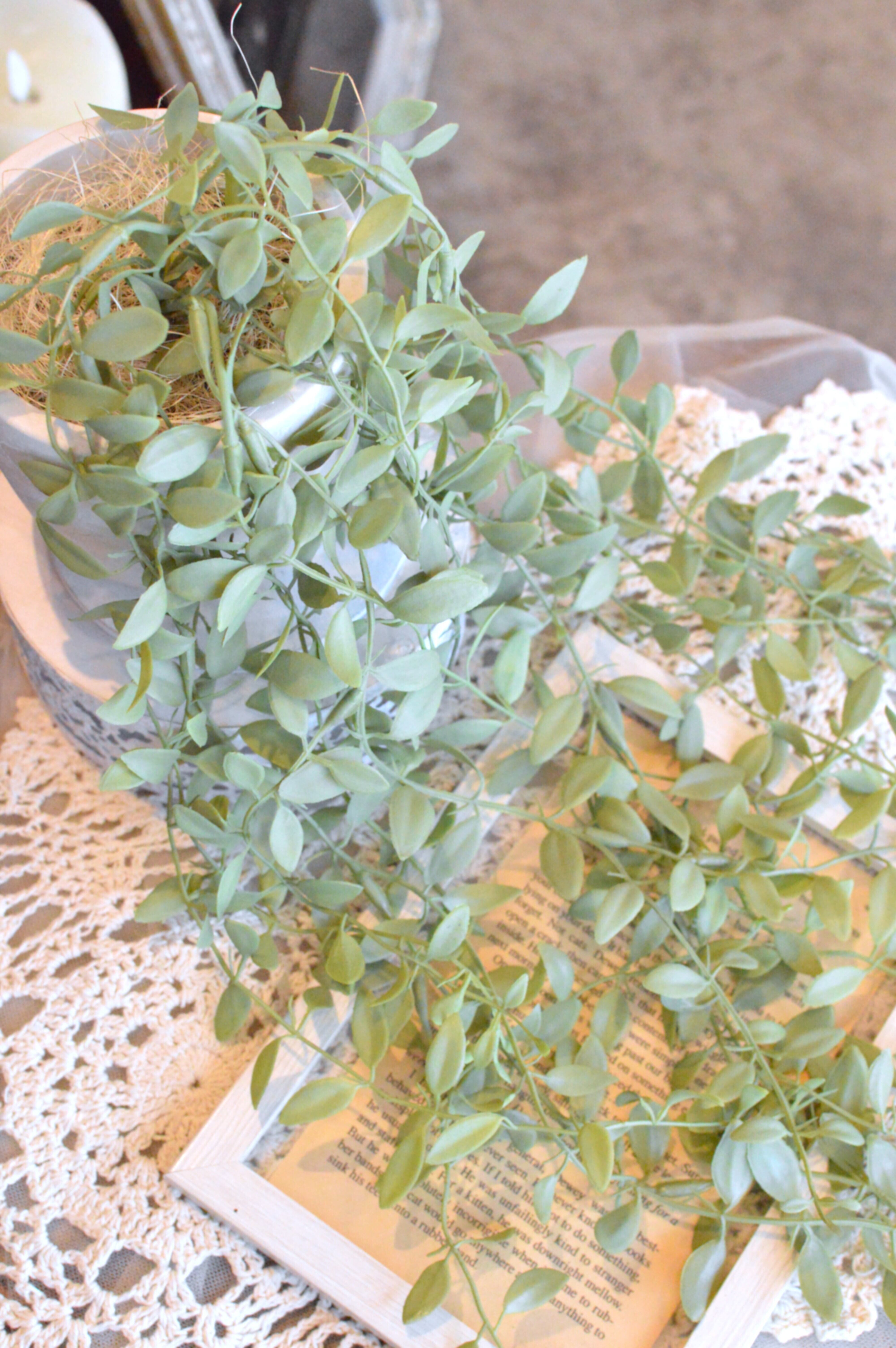 グレイがかった青みグリーンでツル性の植物の美しさを再現し、長く垂れ下がったデザインとなっております。様々なインテリアにマッチしナチュラルな雰囲気を提供します。手間いらずでお手入れもお水も不要。枯れることもなく、長期間美しさを楽しむことができ、忙しい日常の中でも手軽に緑の癒しを取り入れられます。