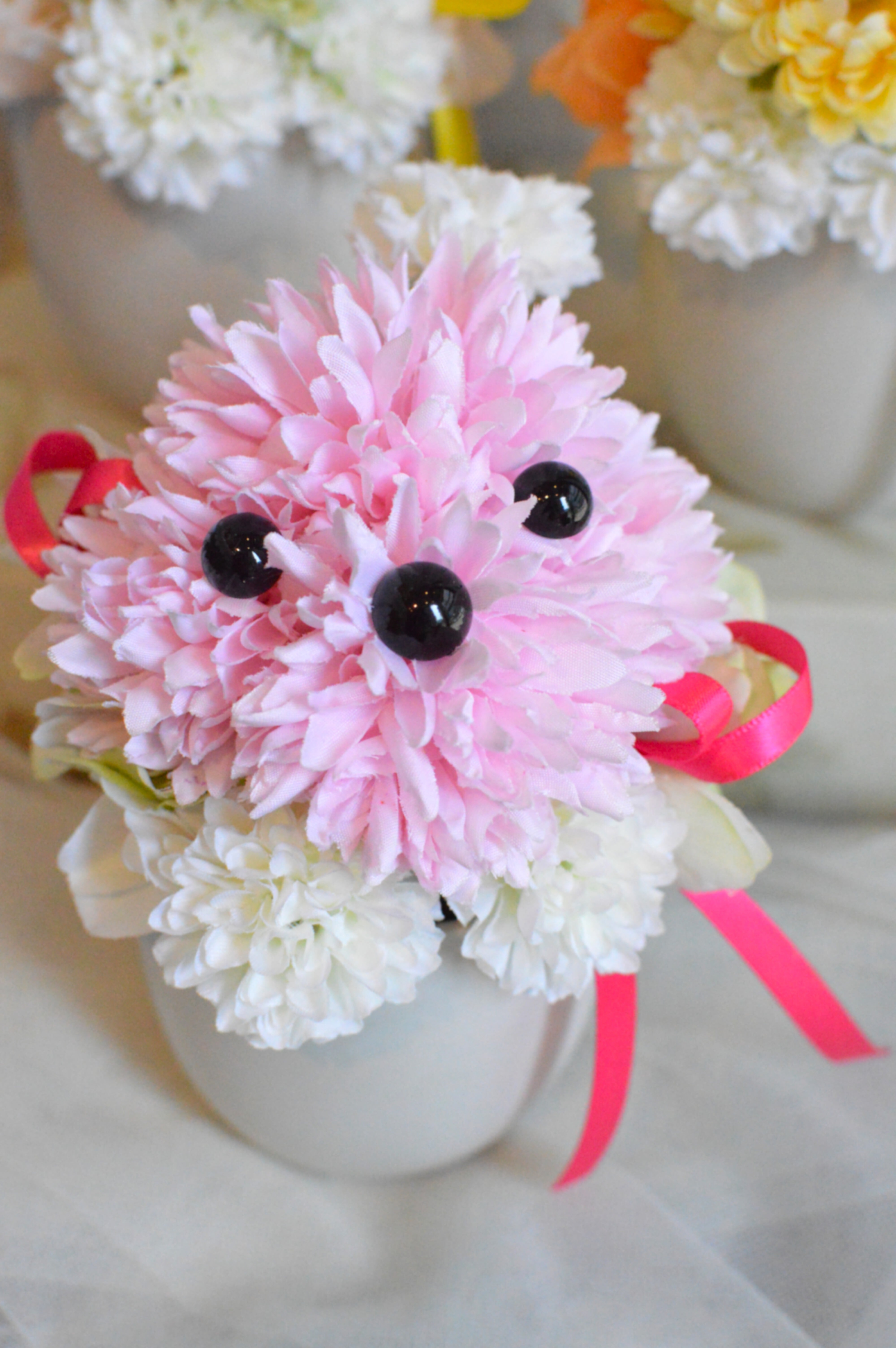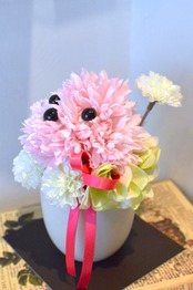 こちらはプードルをモチーフに、いちごミルクをイメージしてお作りしたアレンジメントです。