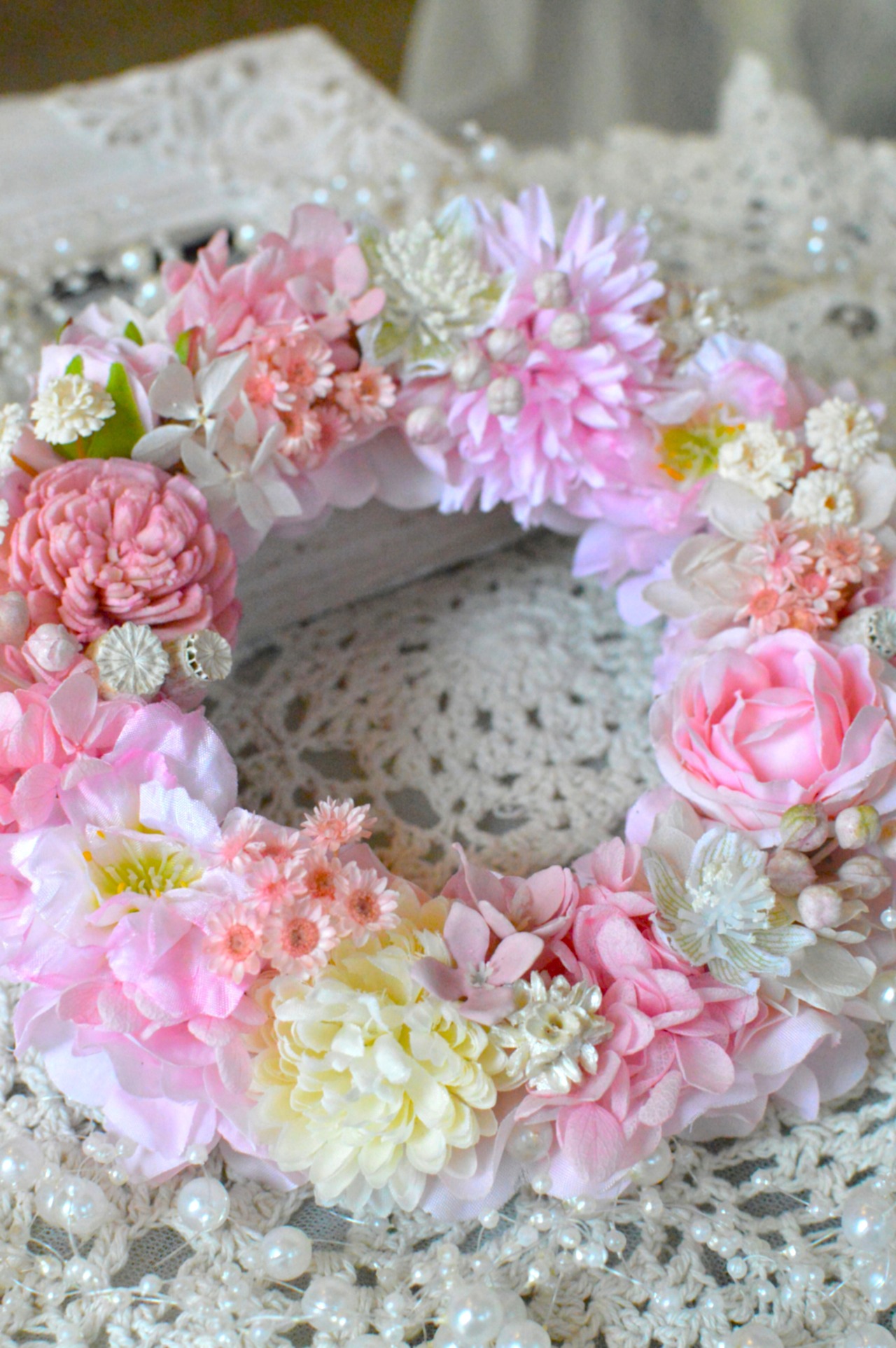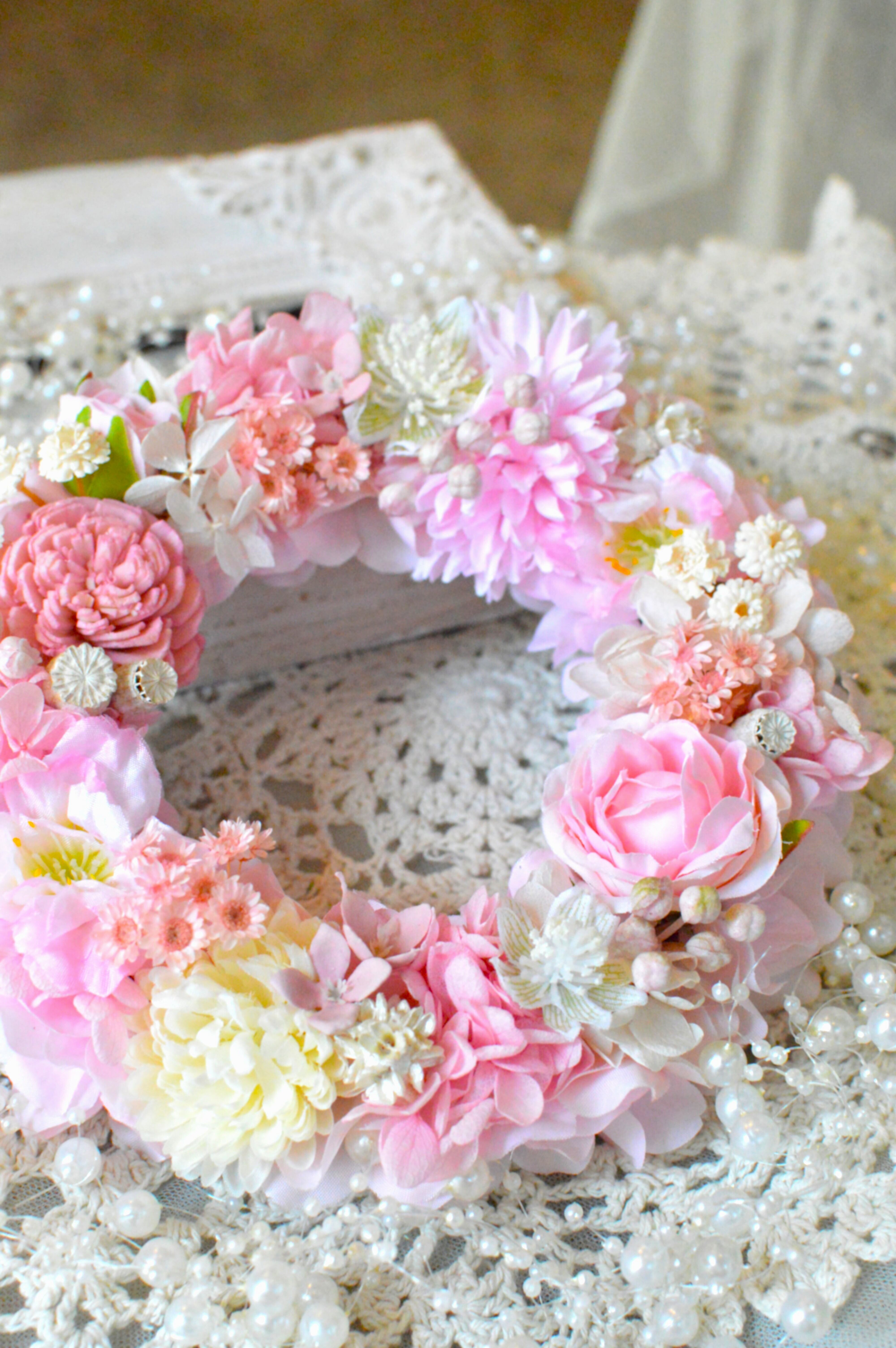 淡めのラブリーピンクと青みピンク、優しい白のコントラストが、明るく華やかな雰囲気を演出します。