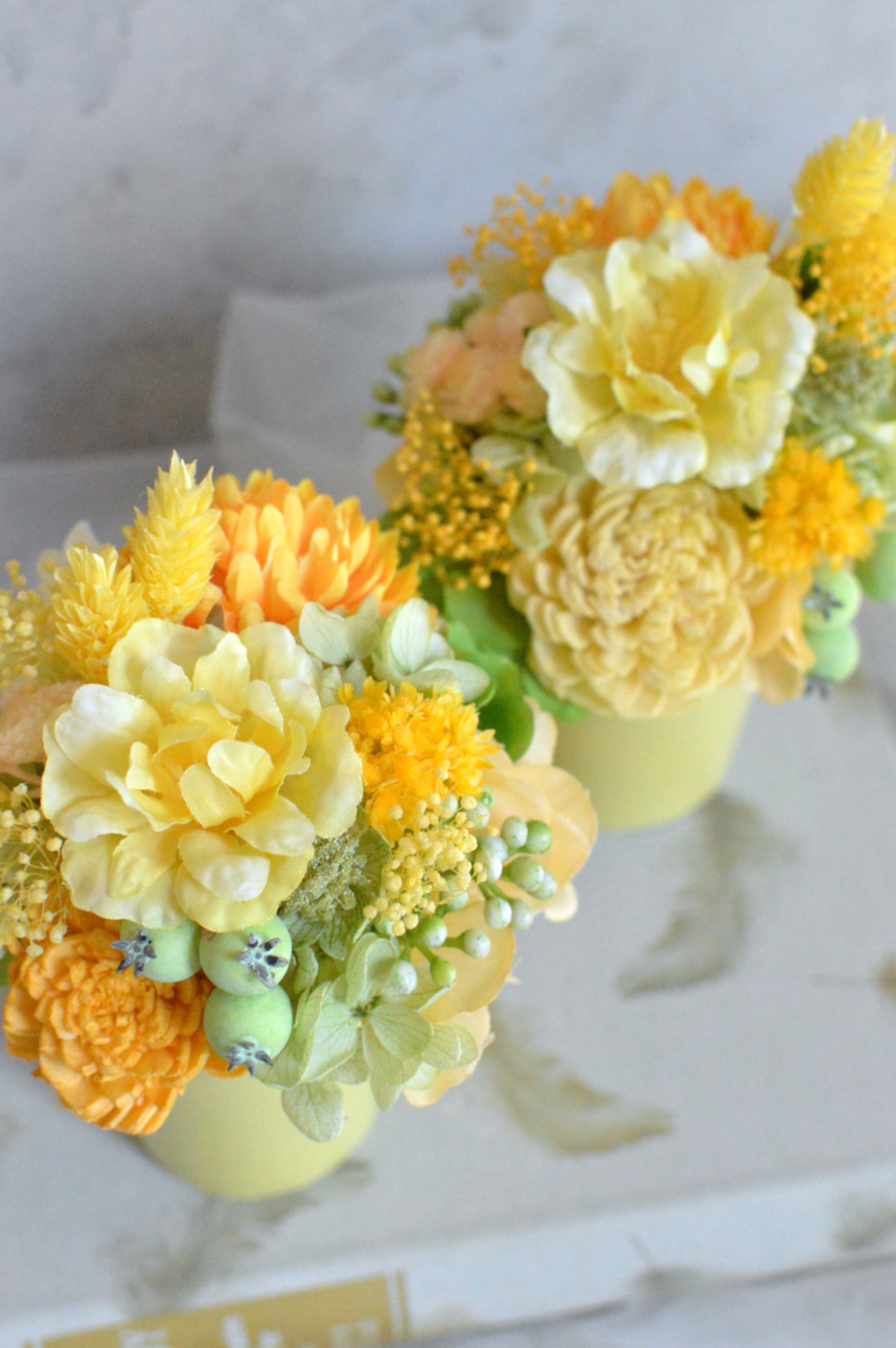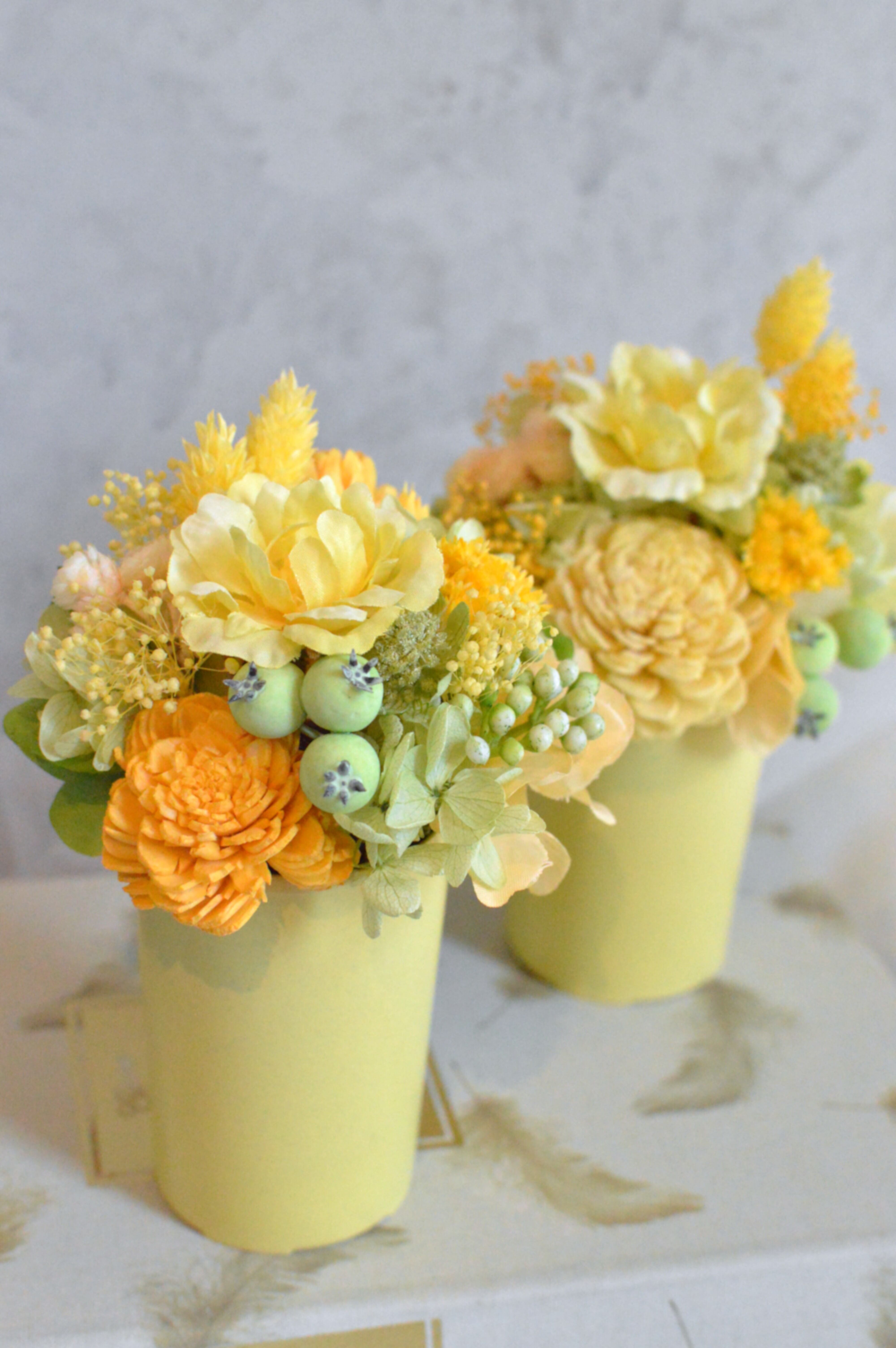 ミニカップアレンジメント(フレッシュシトラス/イエローグリーン)