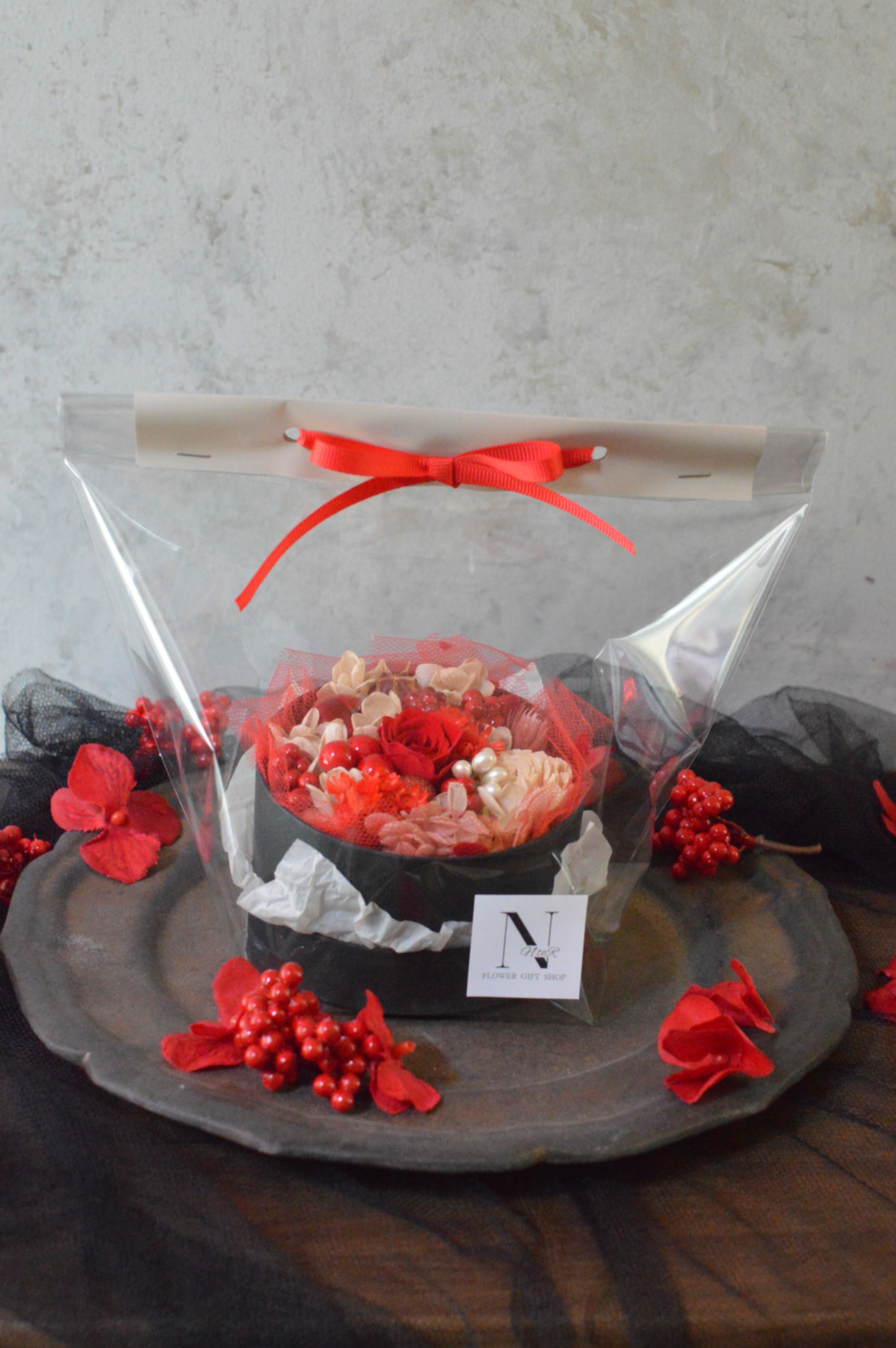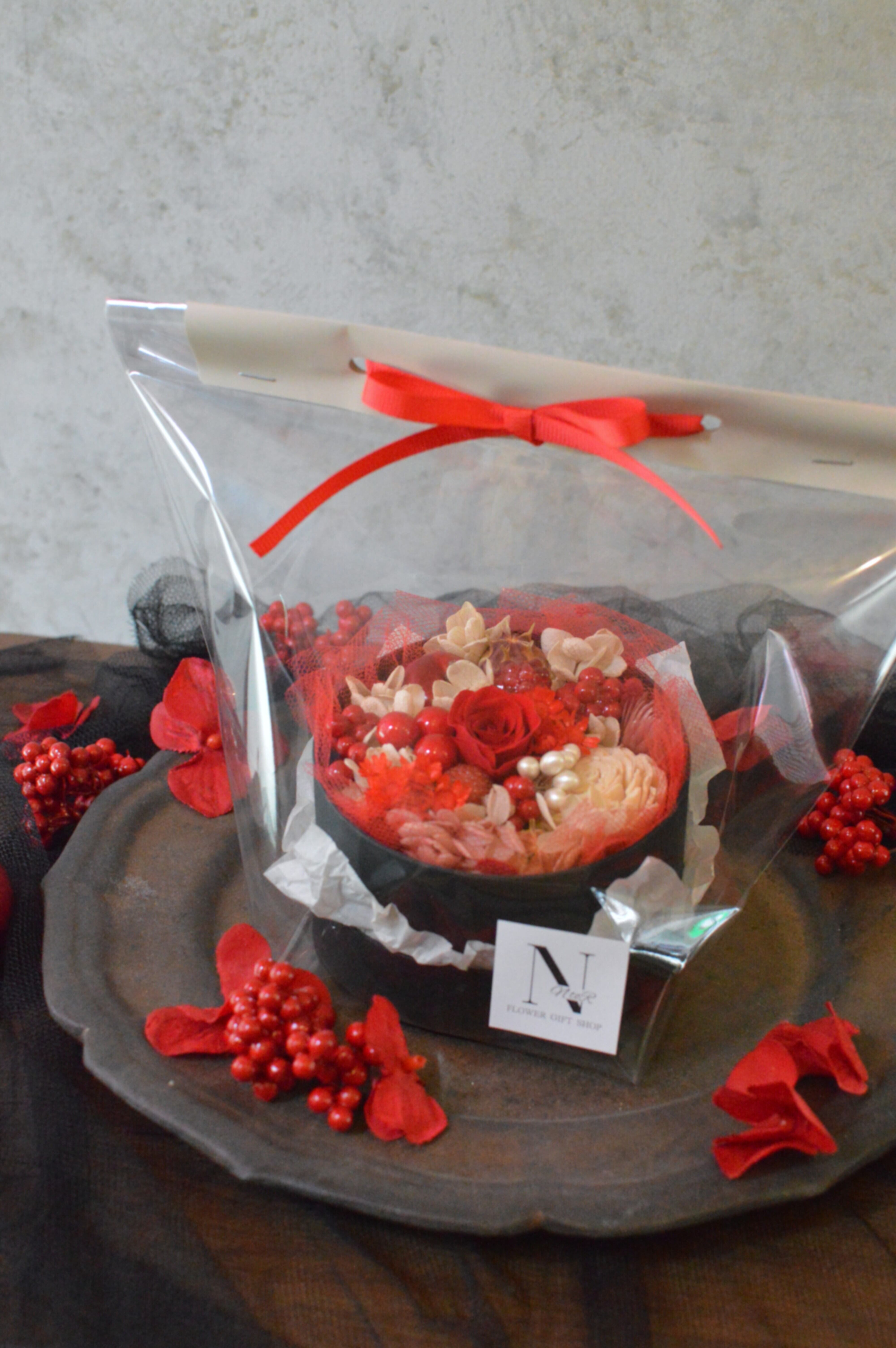 ※在庫が複数ある場合、どの商品をお届けするかおまかせ頂きます。同じ花材を使用して一つ一つ違った配置でお作りしていますので、お花の並び方やサイズ感等多少の個体差がございますが御了承下さい。