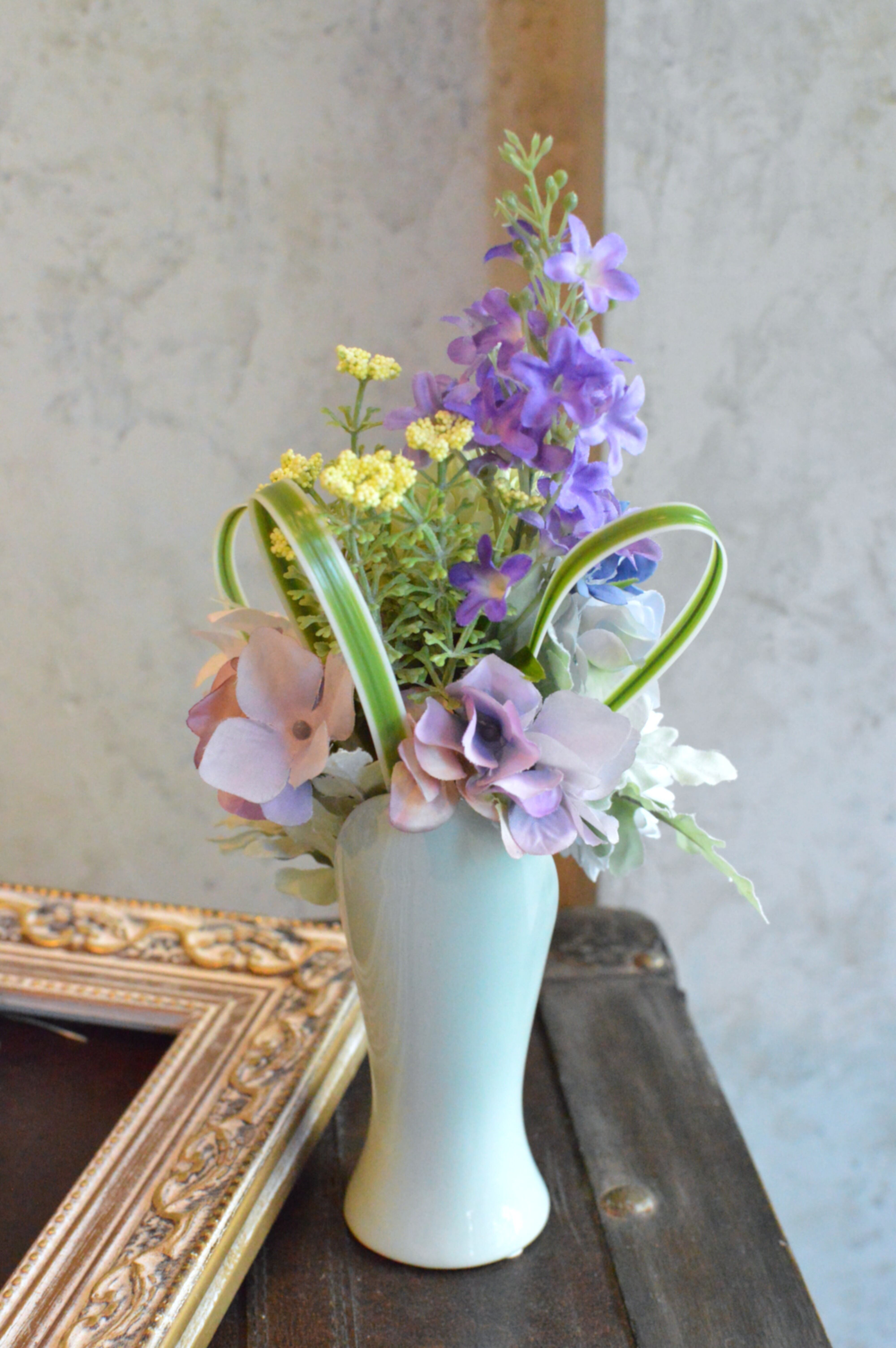アーティフィシャルフラワー(造花)のみを使用しており耐久性もあります。