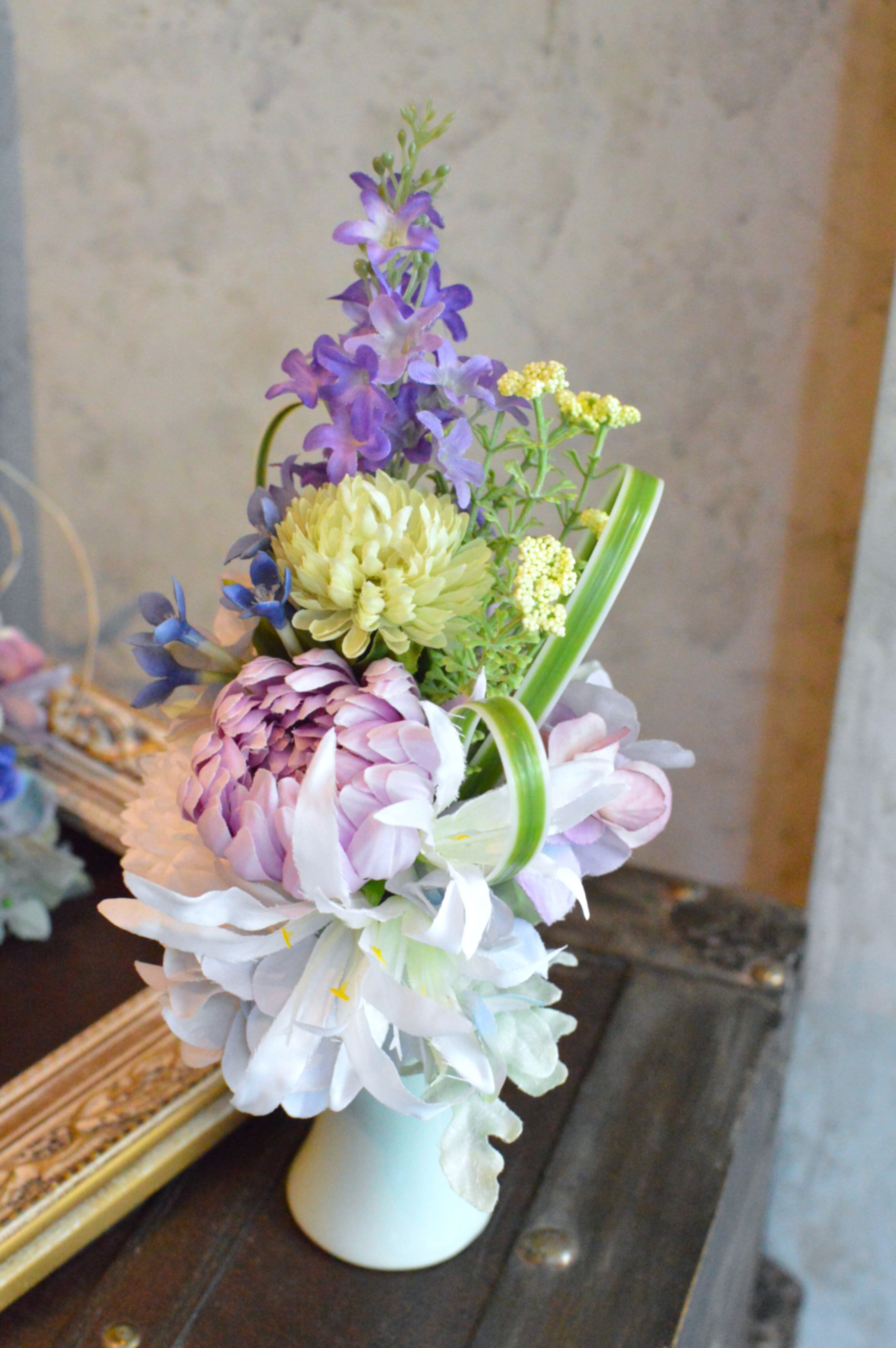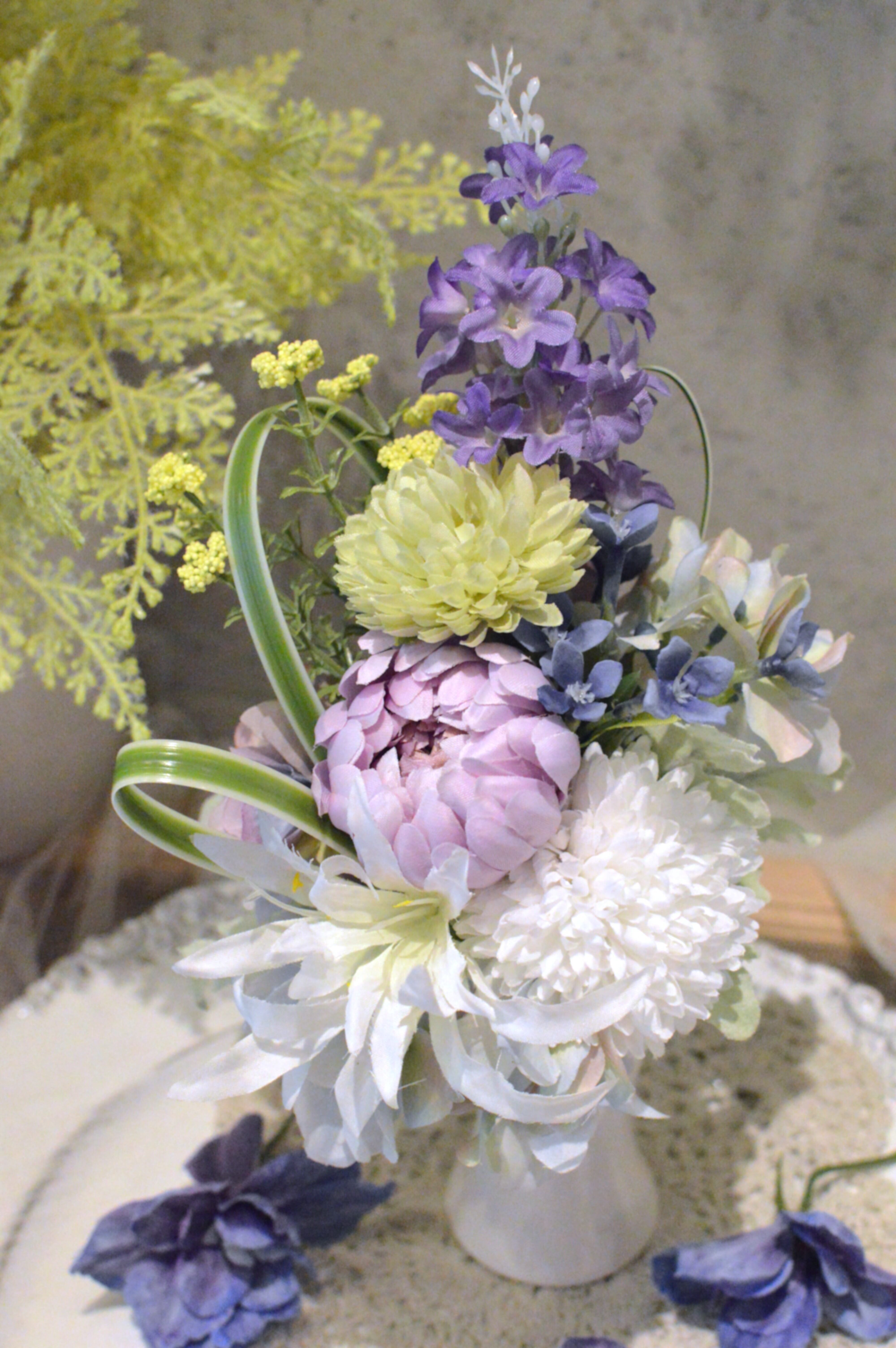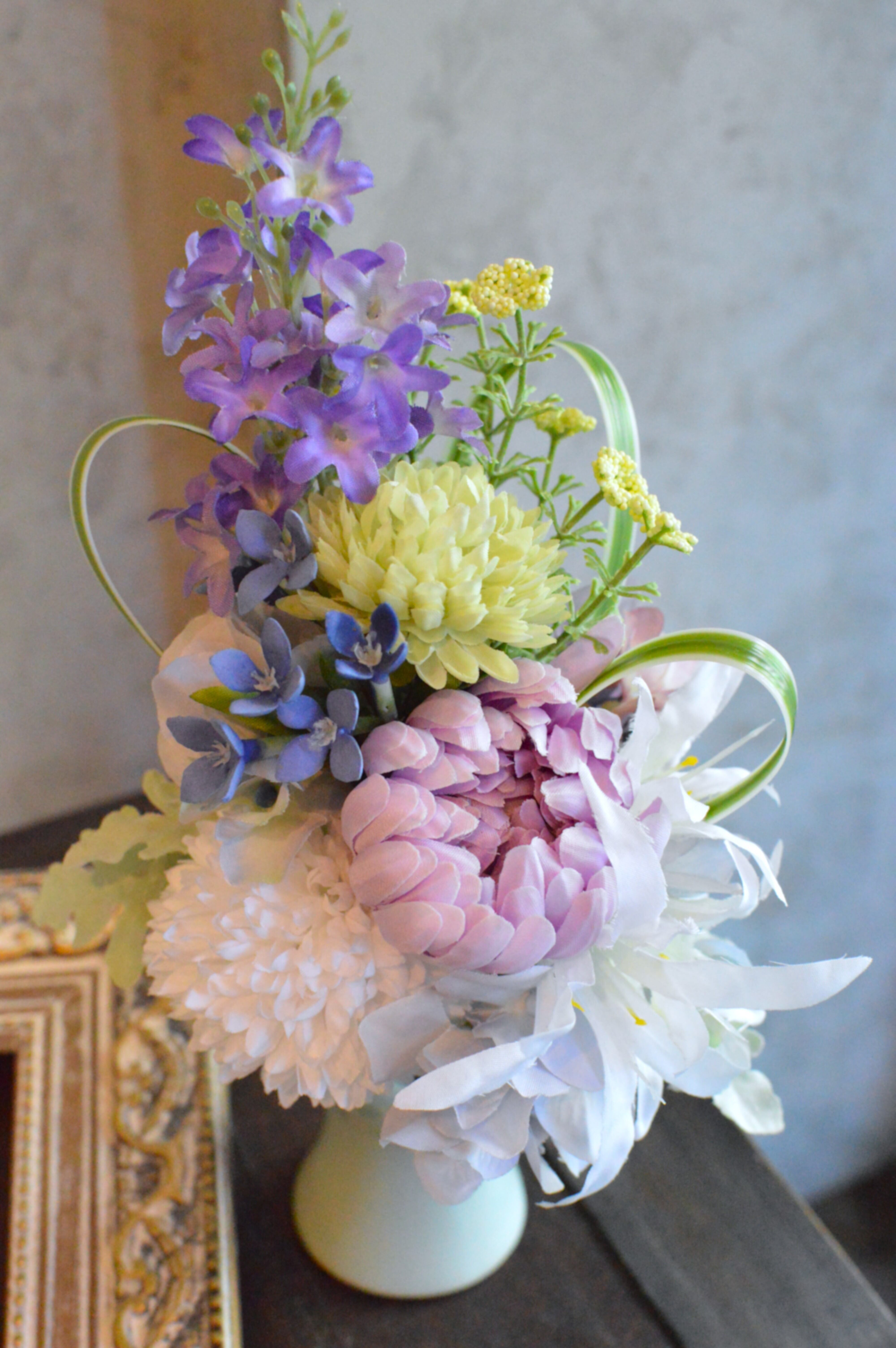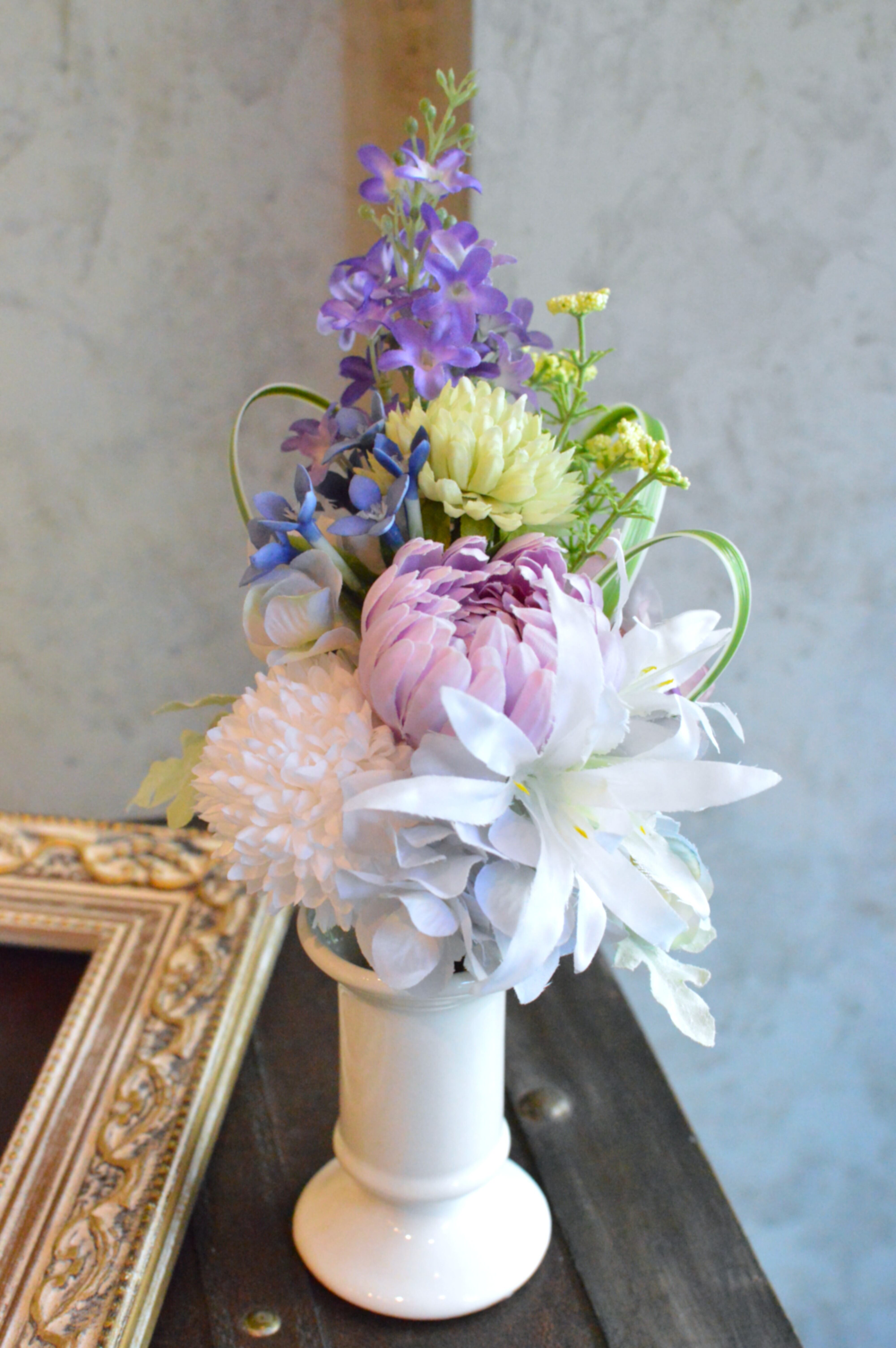 こちらは、お仏壇のお供え用にお作りしたアーティフィシャルフラワー(造花)のブーケです。