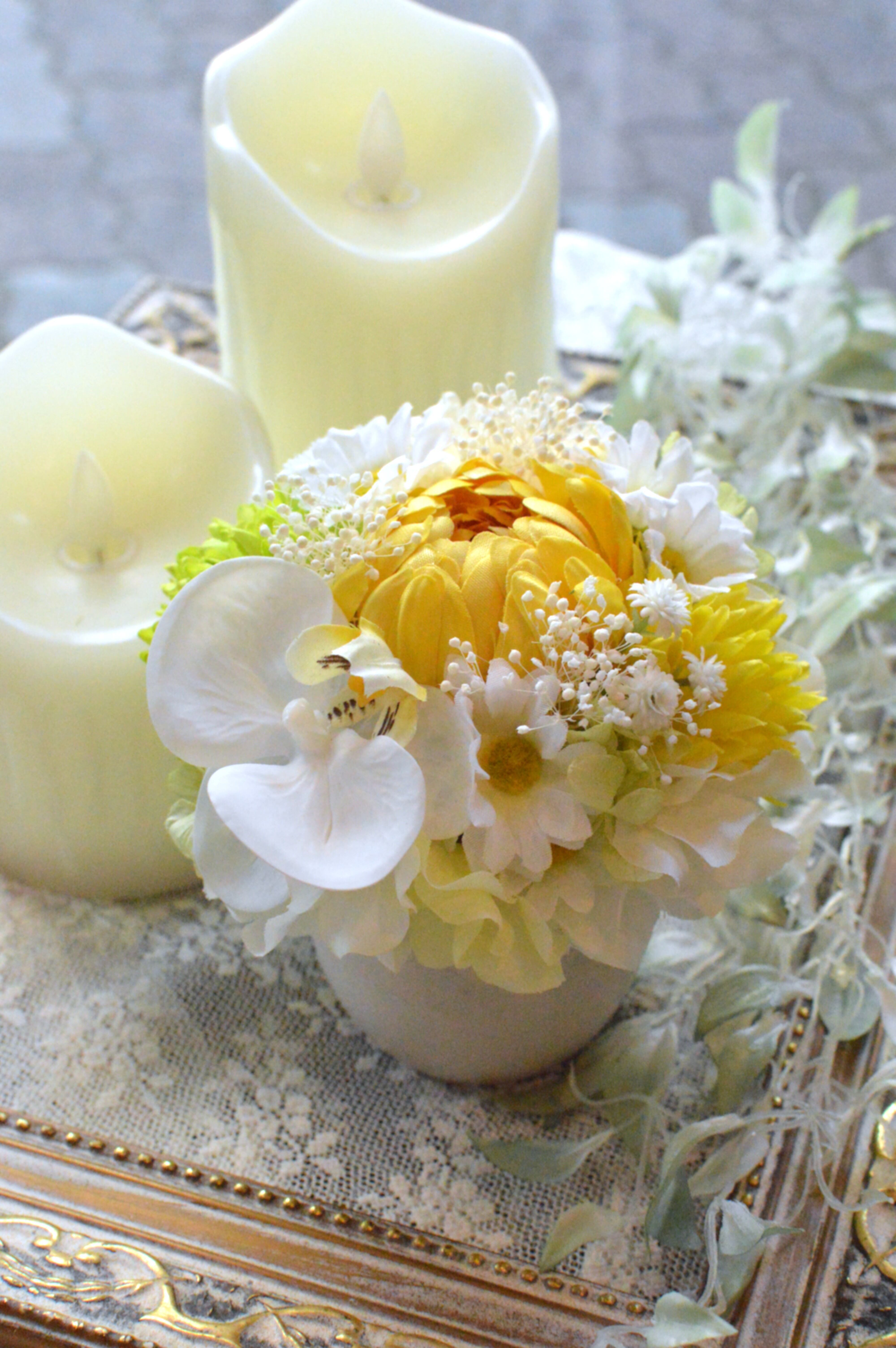 プリザーブドフラワーやアーティフィシャルフラワーを使用しております。