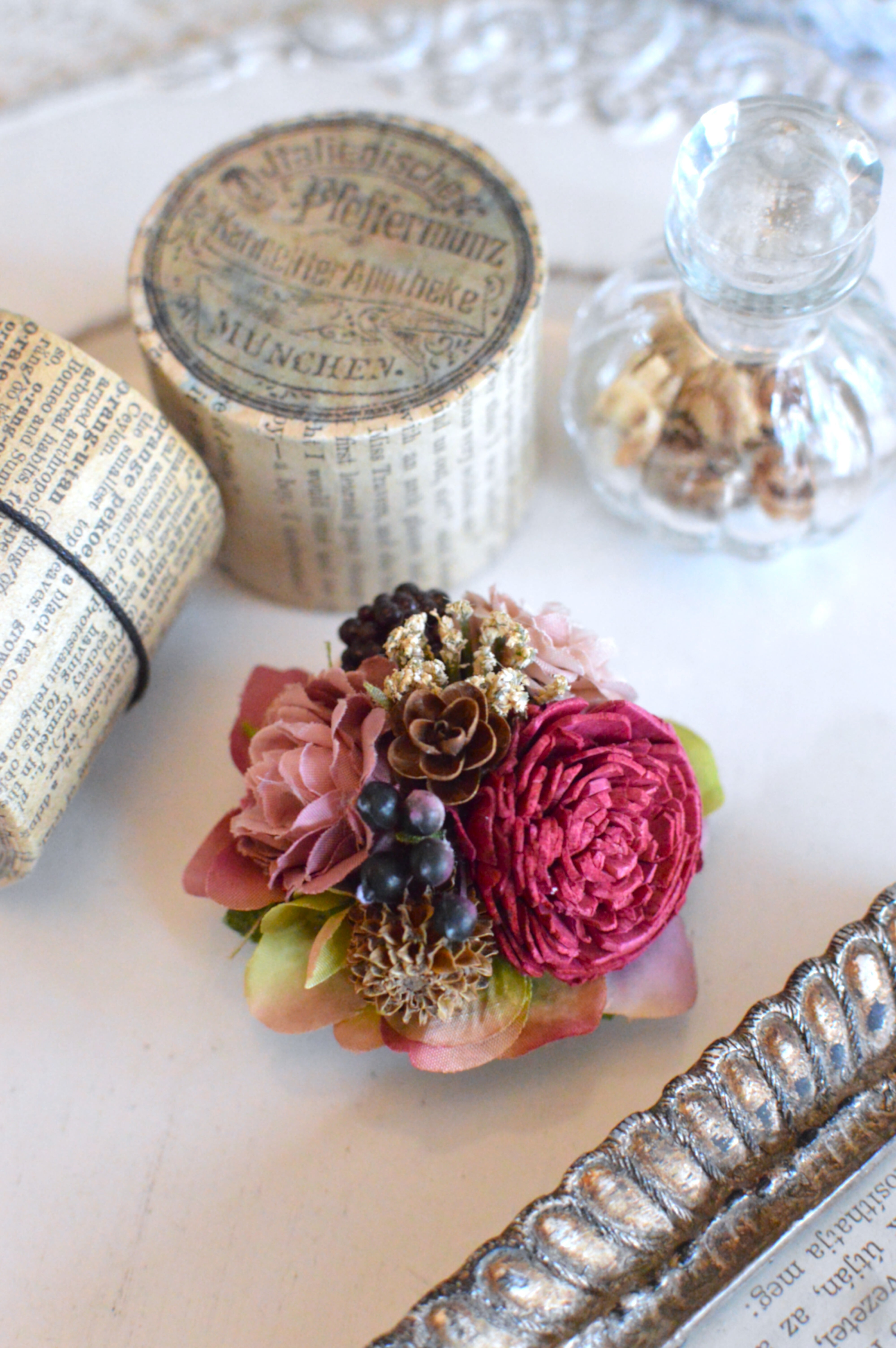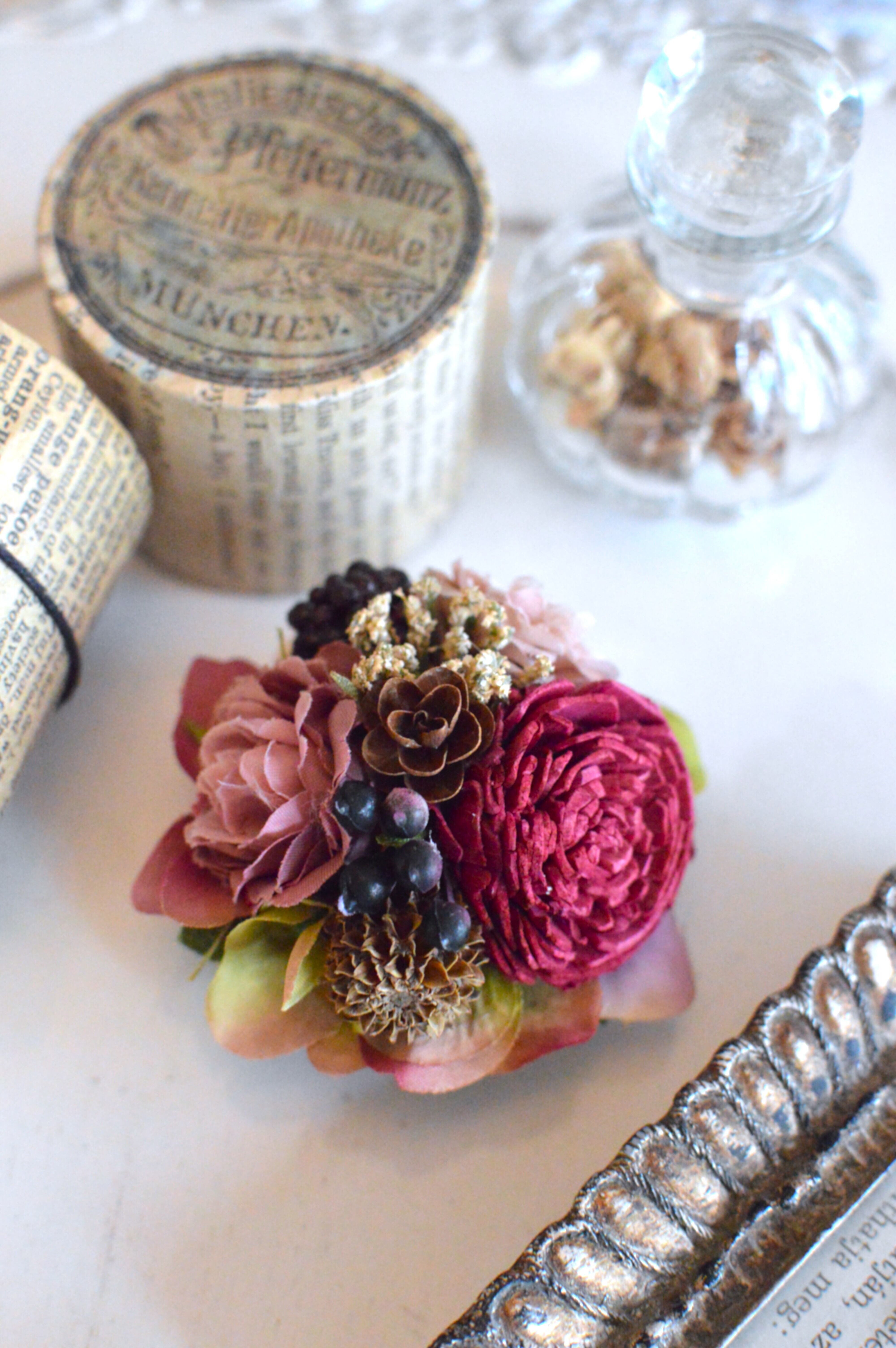 アンティークレッドのコサージュ(RE-4)
