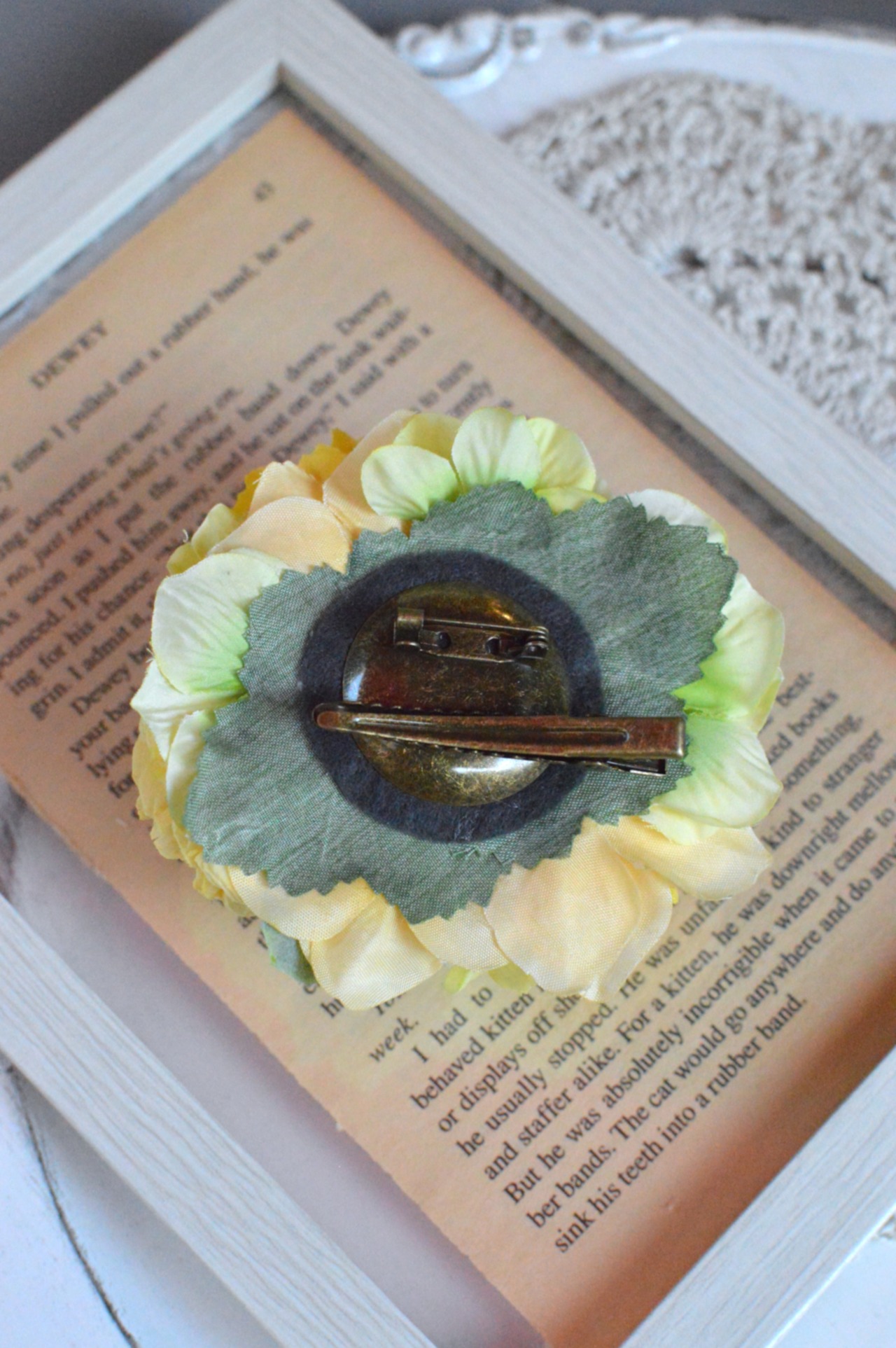 止め金具は真鍮色でピンとクリップの2wayタイプ。