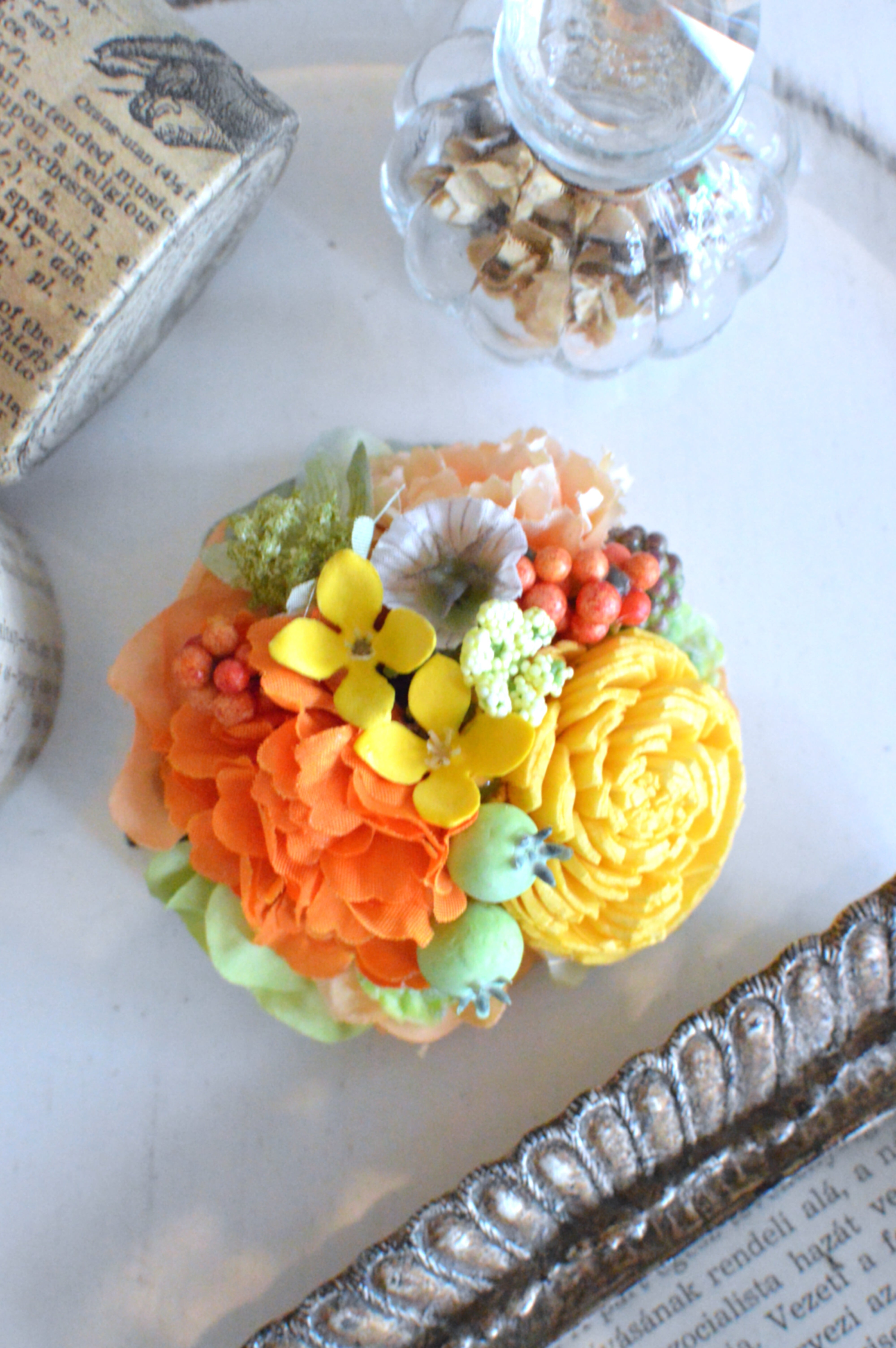 こちらはアーティフィシャルフラワー、ドライフラワーを使用して製作しております。