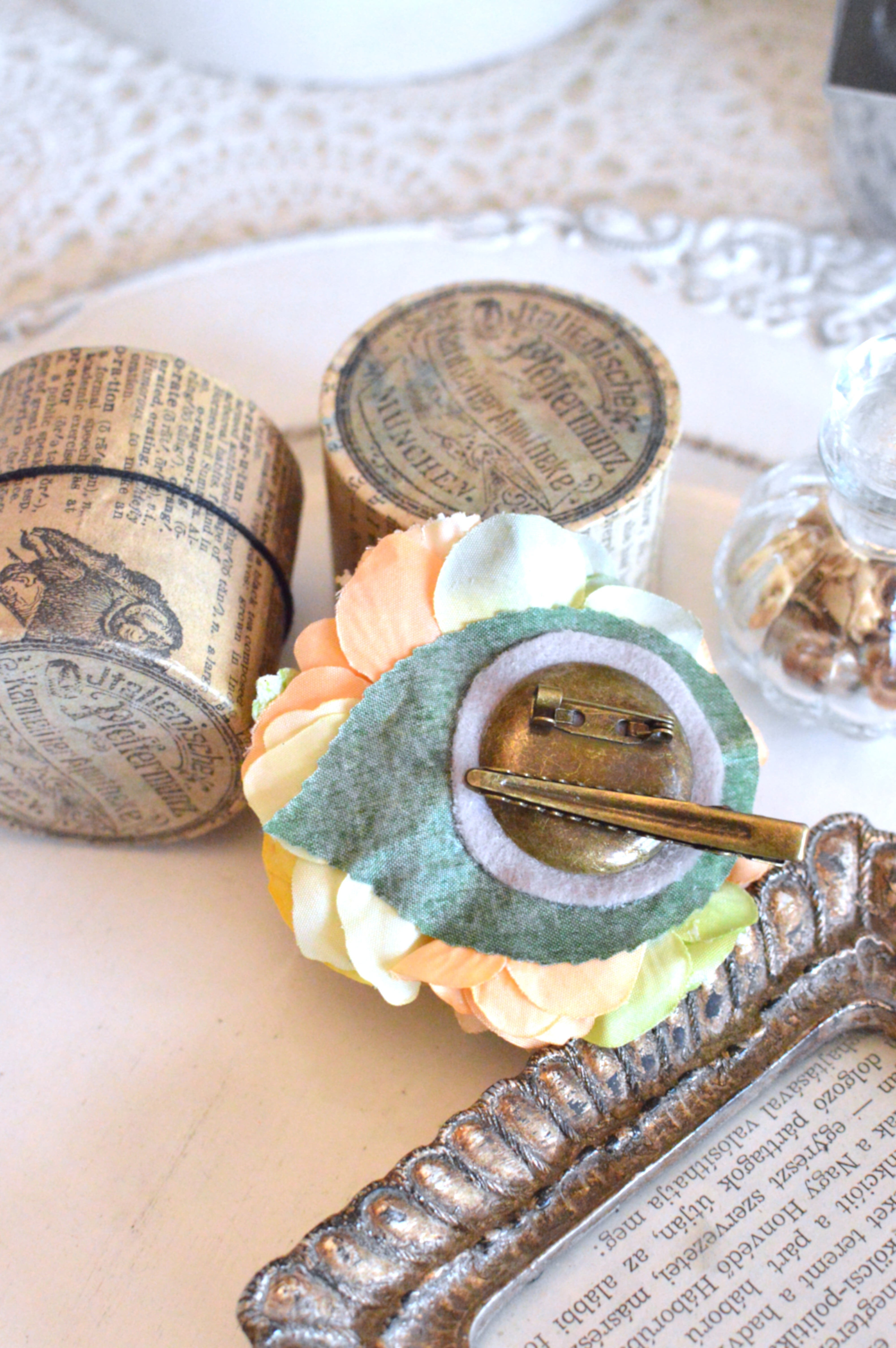 止め金具は真鍮色でピンとクリップの2wayタイプ。