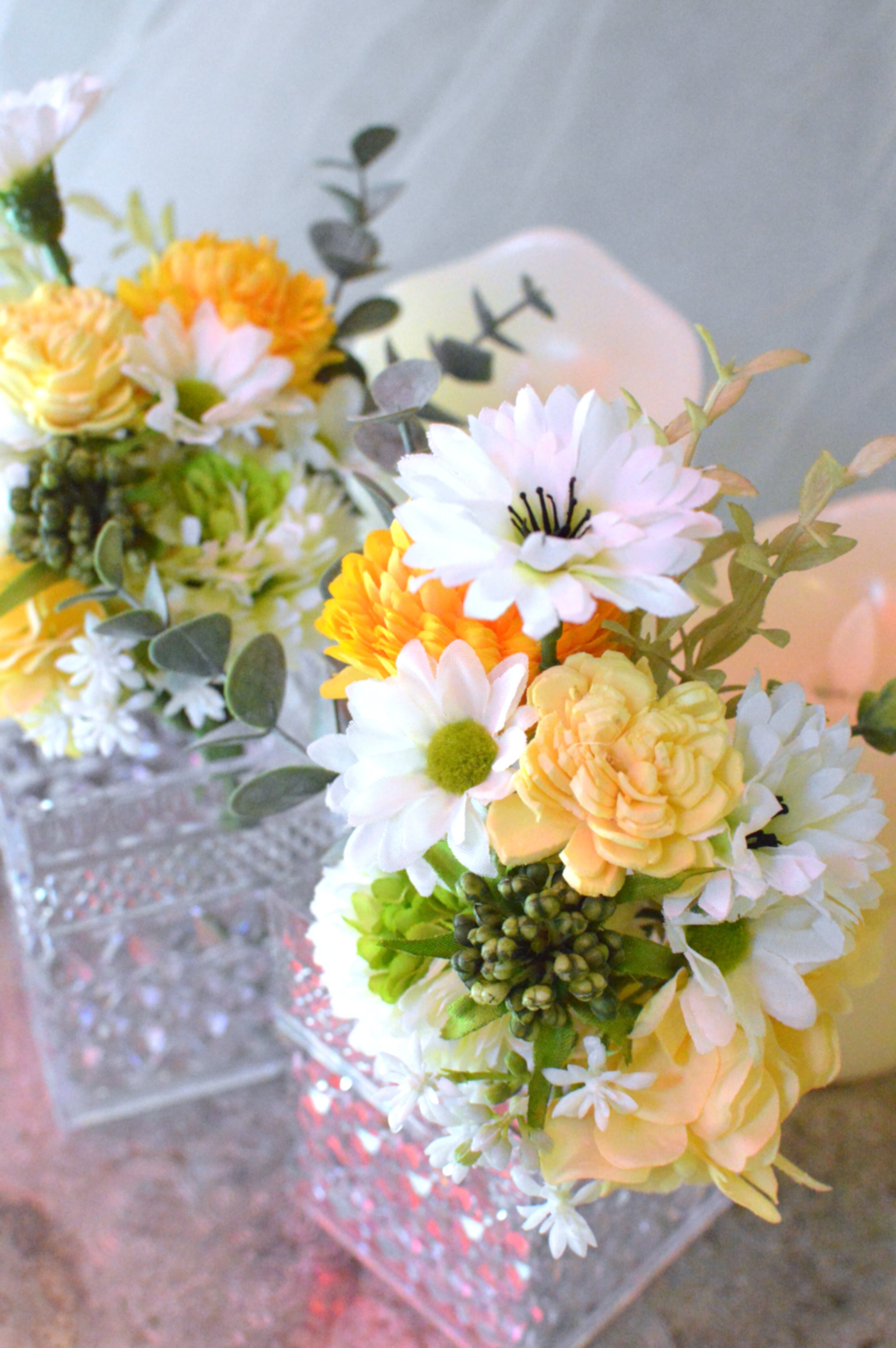 こちらは、お仏壇のお供え用にお作りしたアーティフィシャルフラワー(造花)のブーケです。