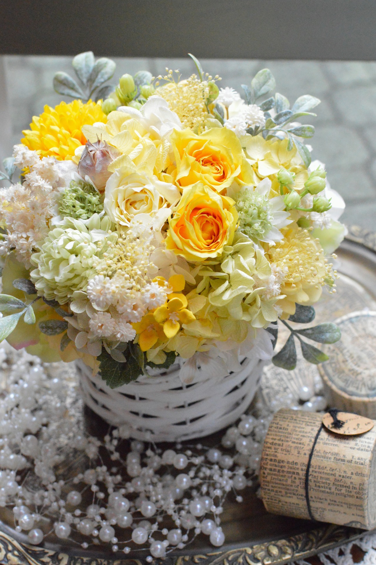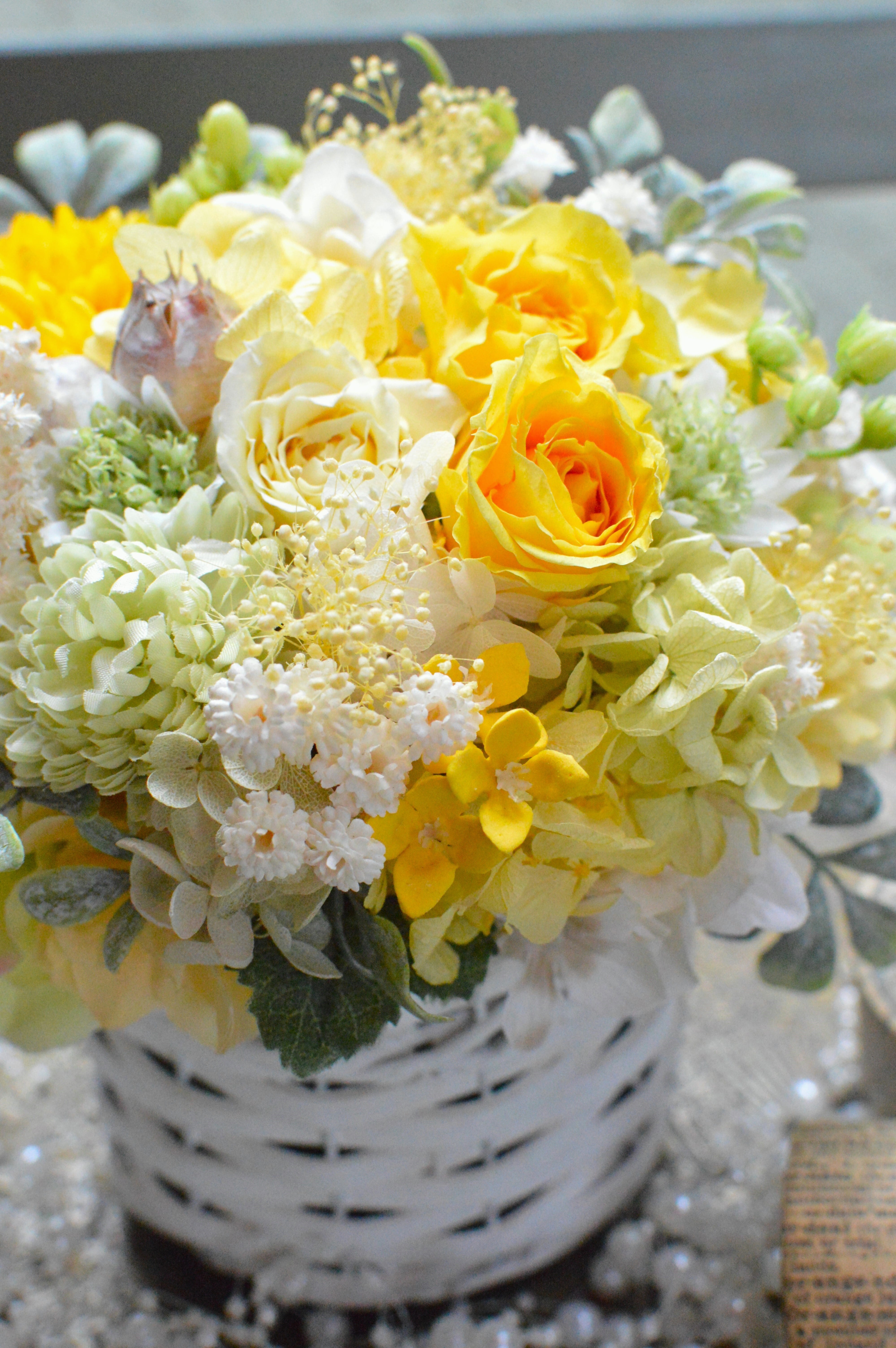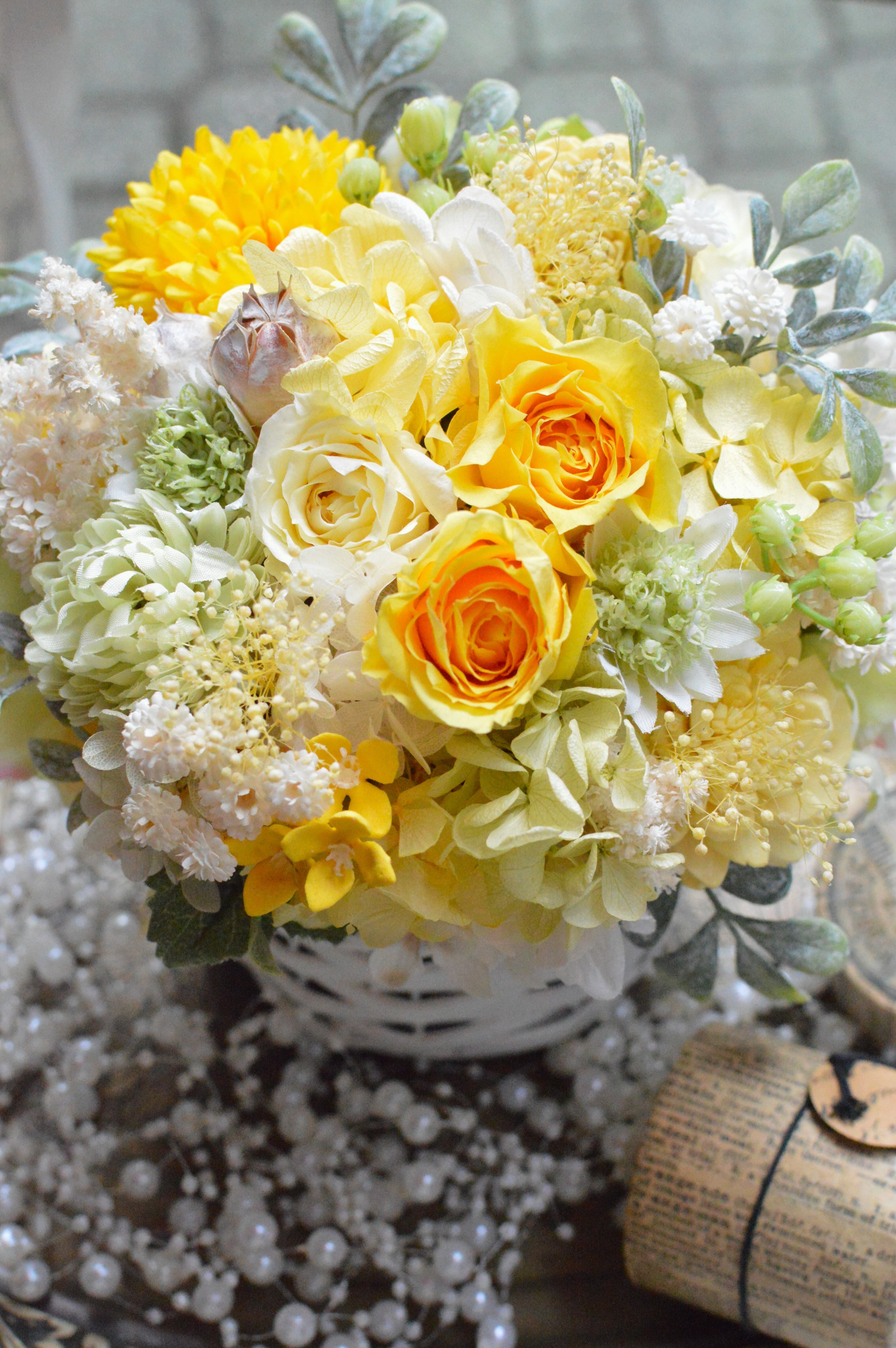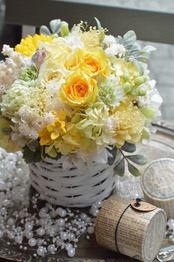 明るい色合いのイエローアレンジメント(Lサイズ)。