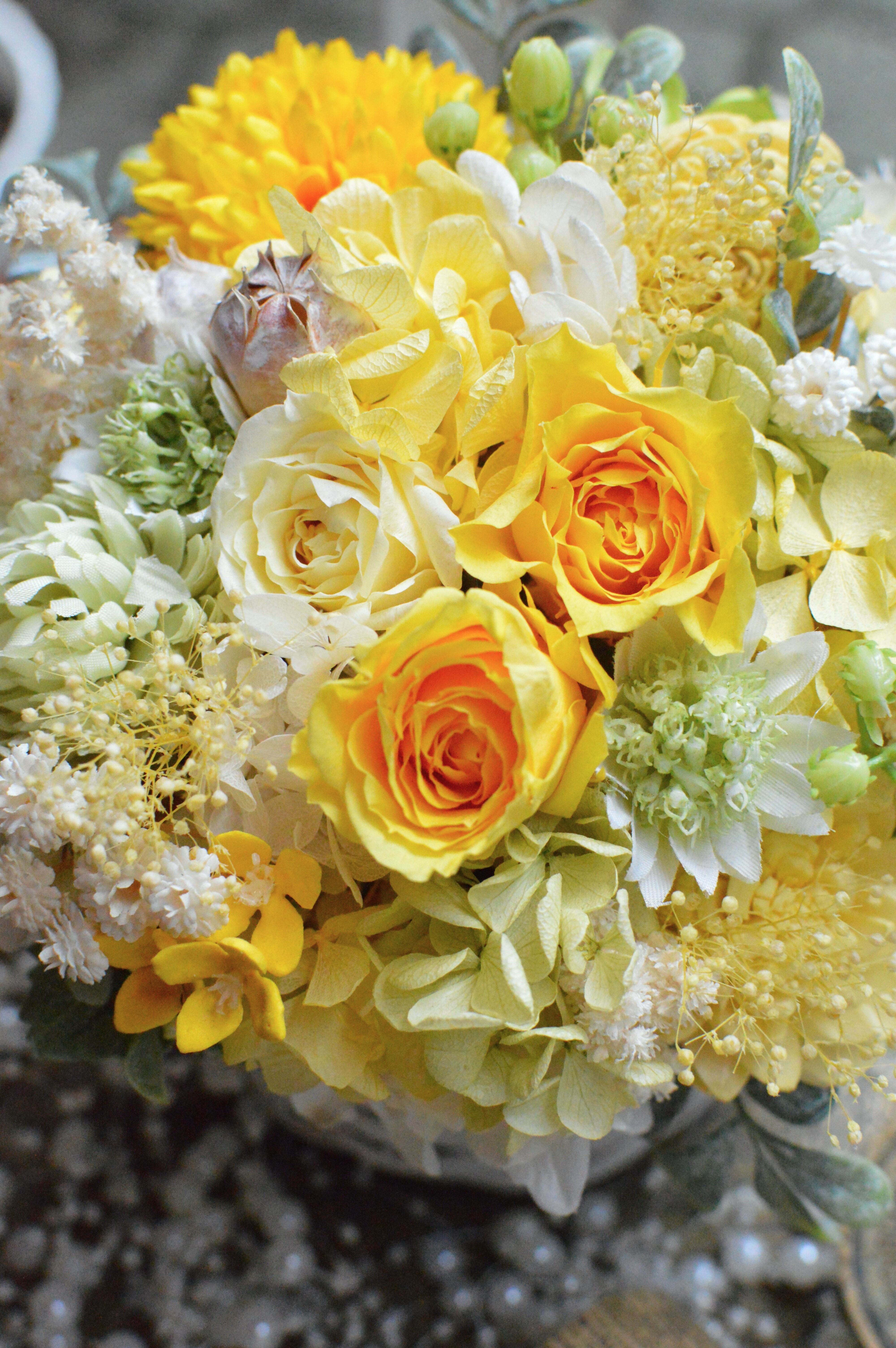 プリザーブドフラワーやアーティフィシャルフラワー、ドライフラワーを使用し、長い間美しさを楽しむ事が出来ます。