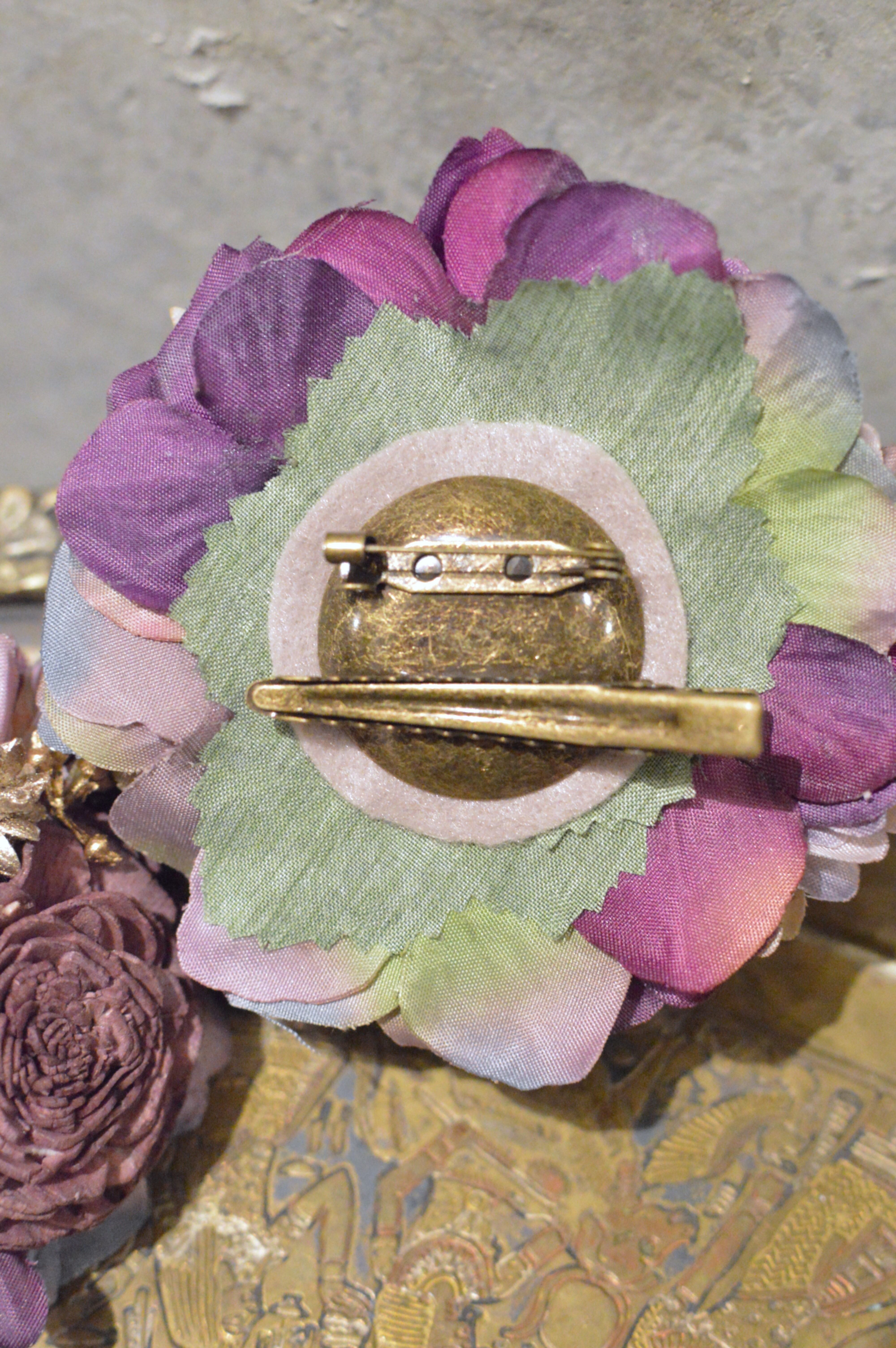 止め金具は真鍮色でピンとクリップの2wayタイプ。