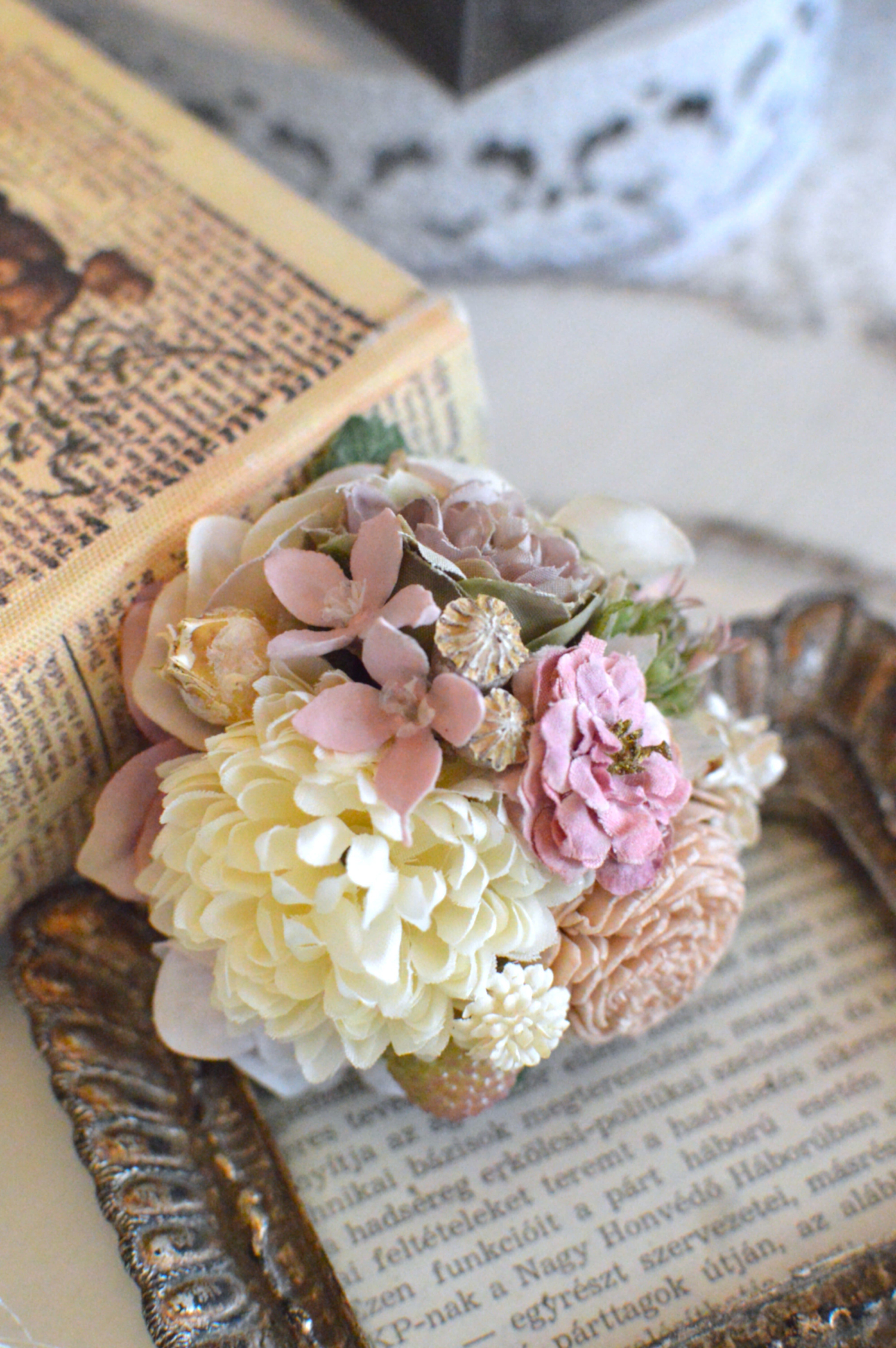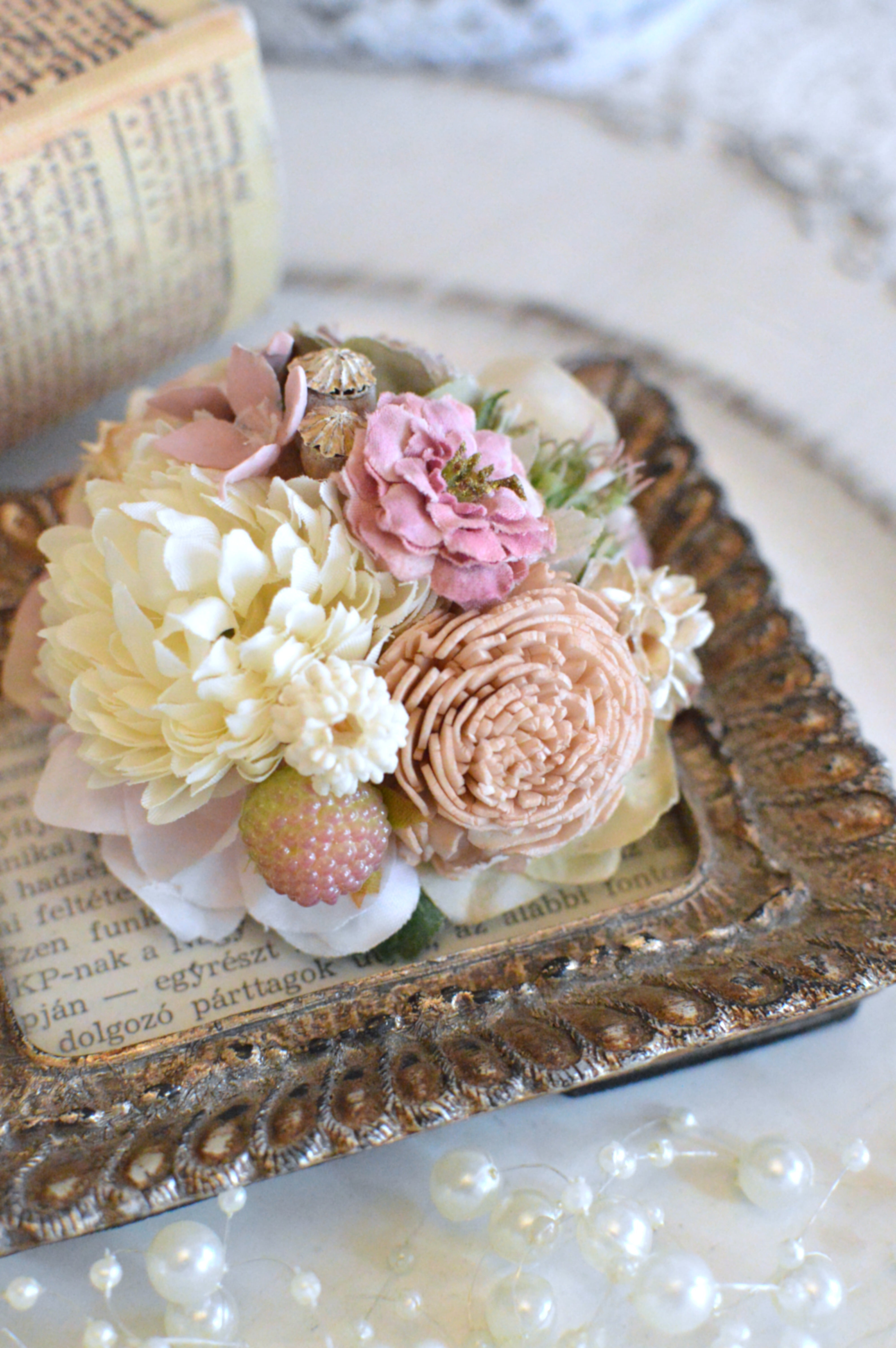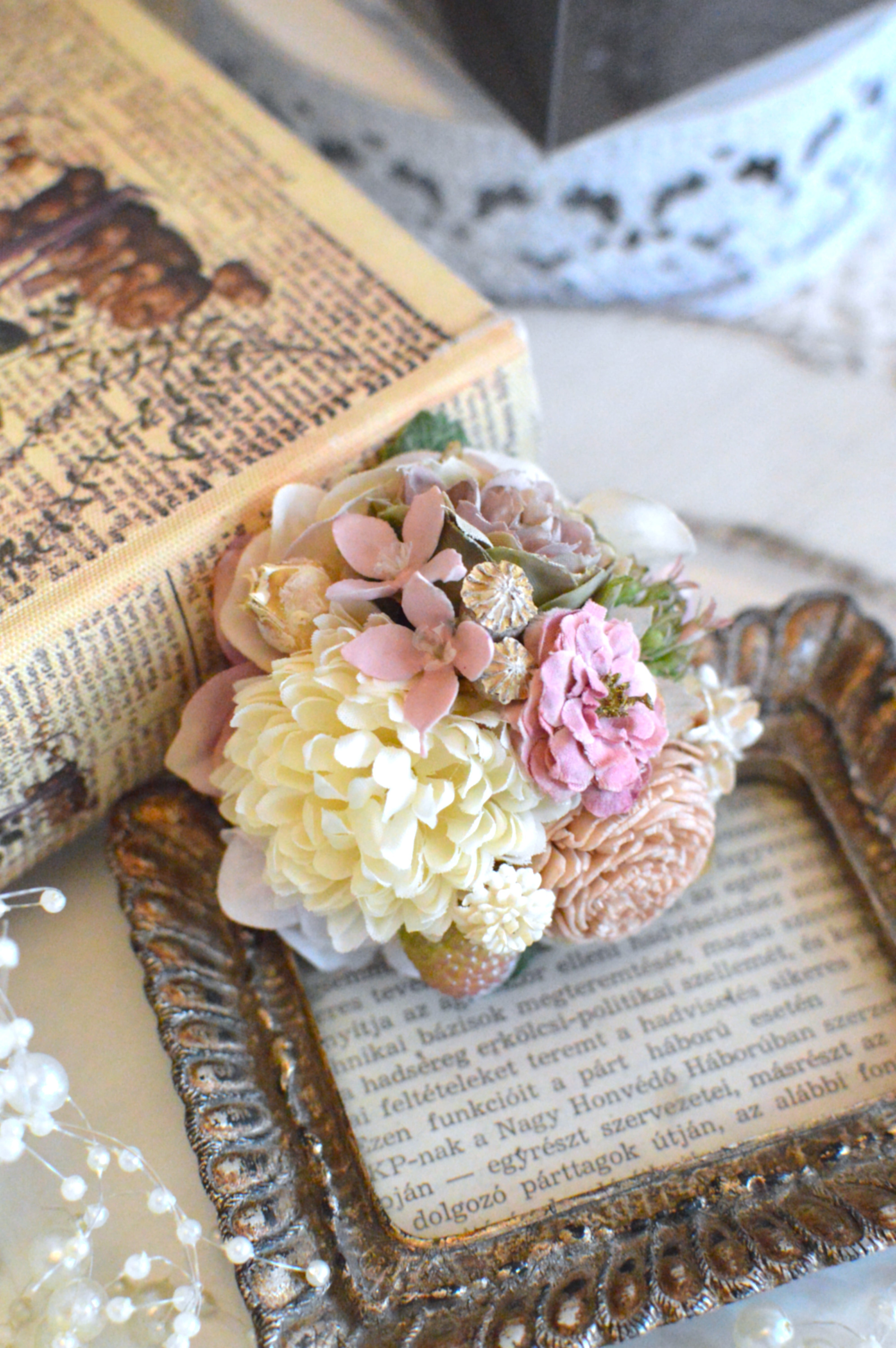 こちらはアーティフィシャルフラワー、ドライフラワー(木の実)を使用して製作しております。