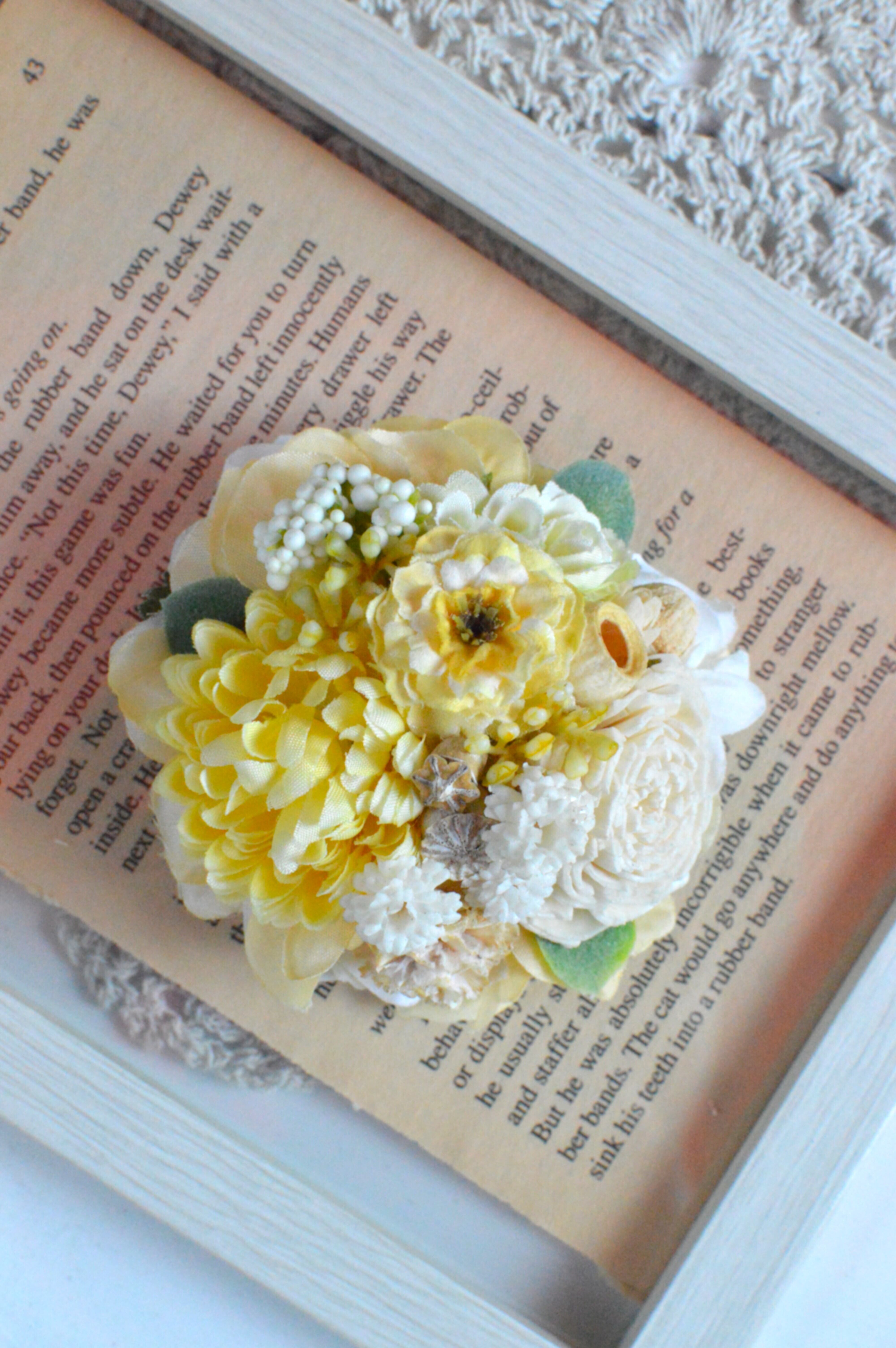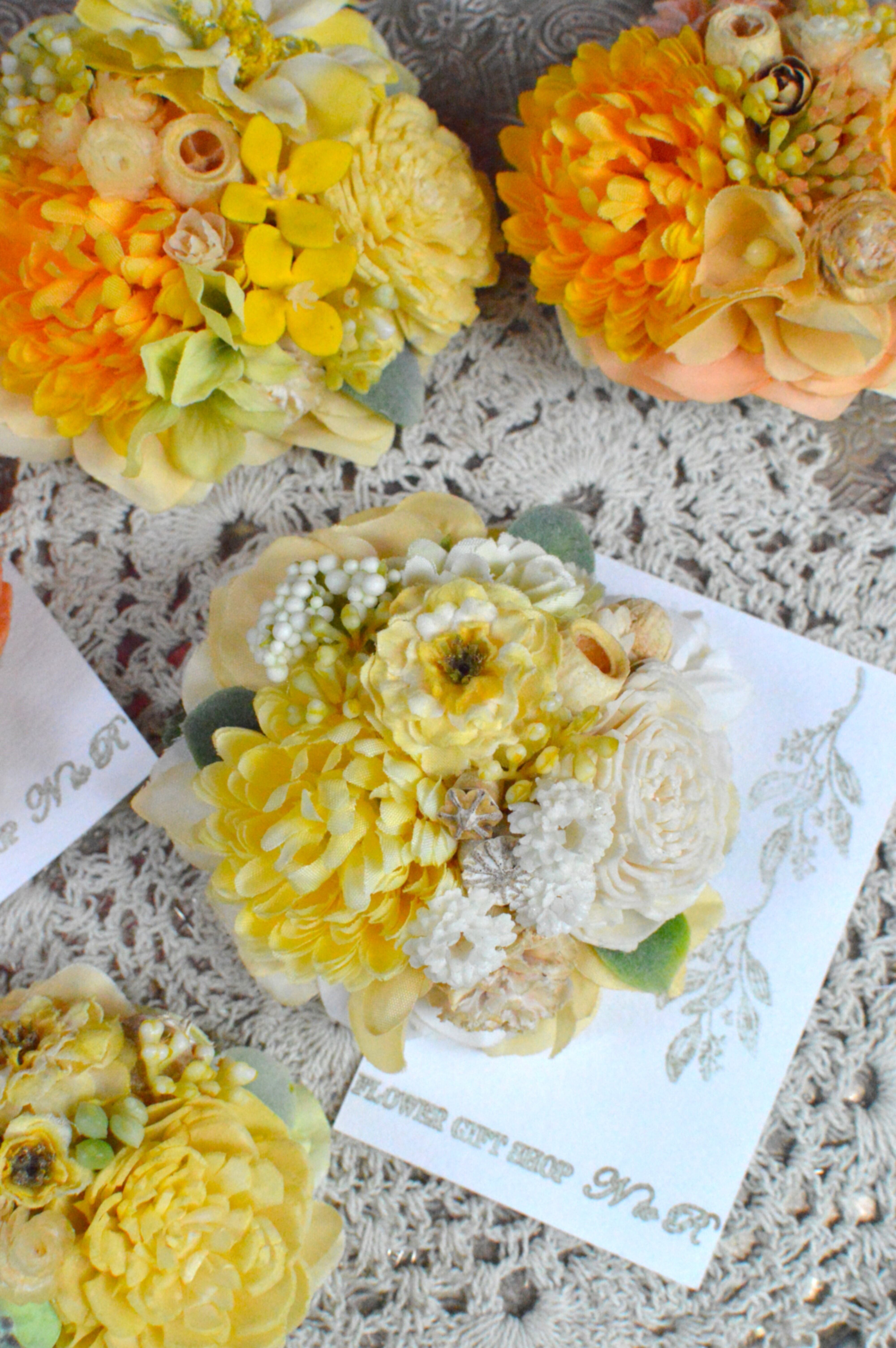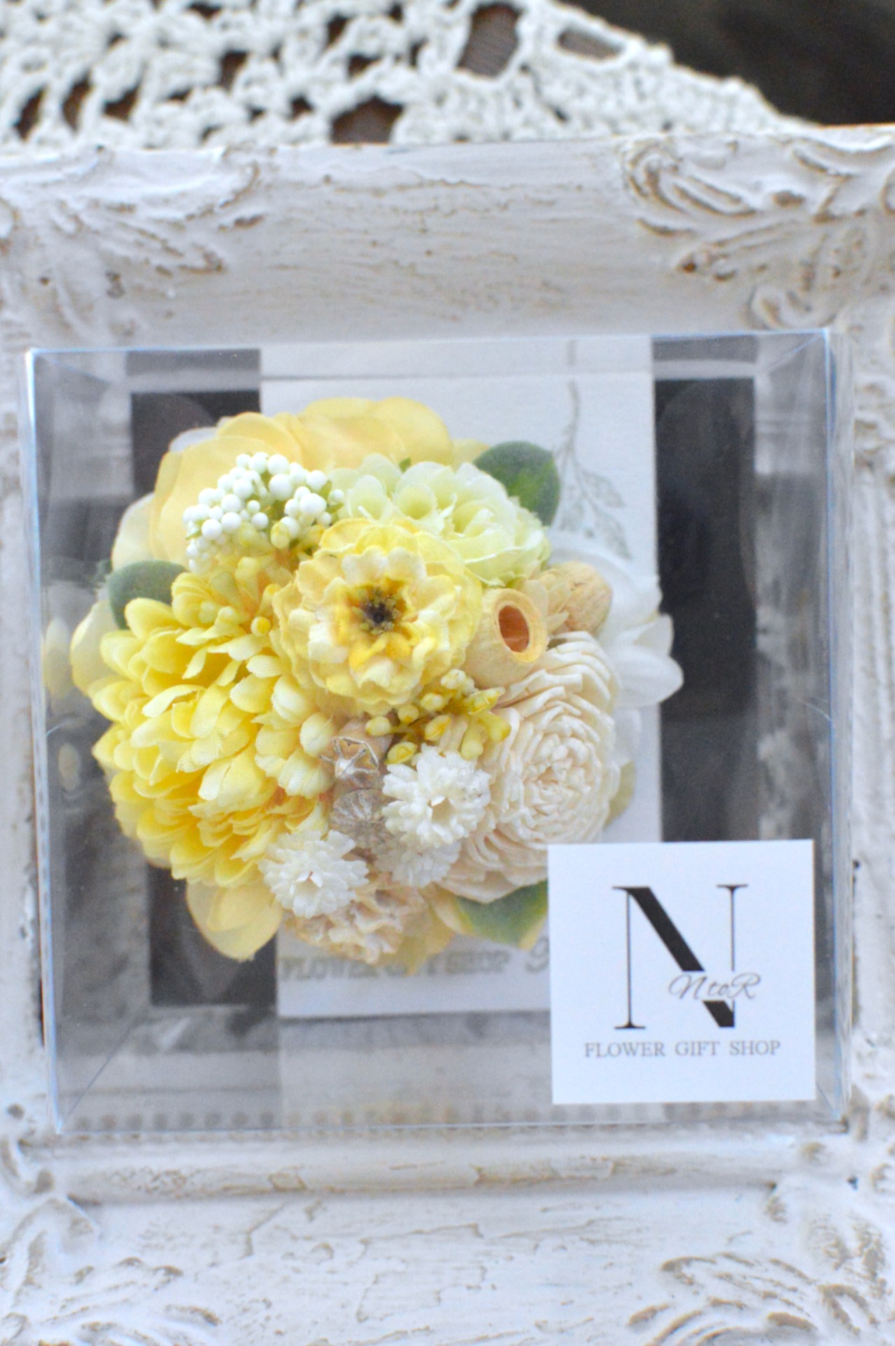 こちらはアーティフィシャルフラワー、ドライフラワーを使用して制作しております。