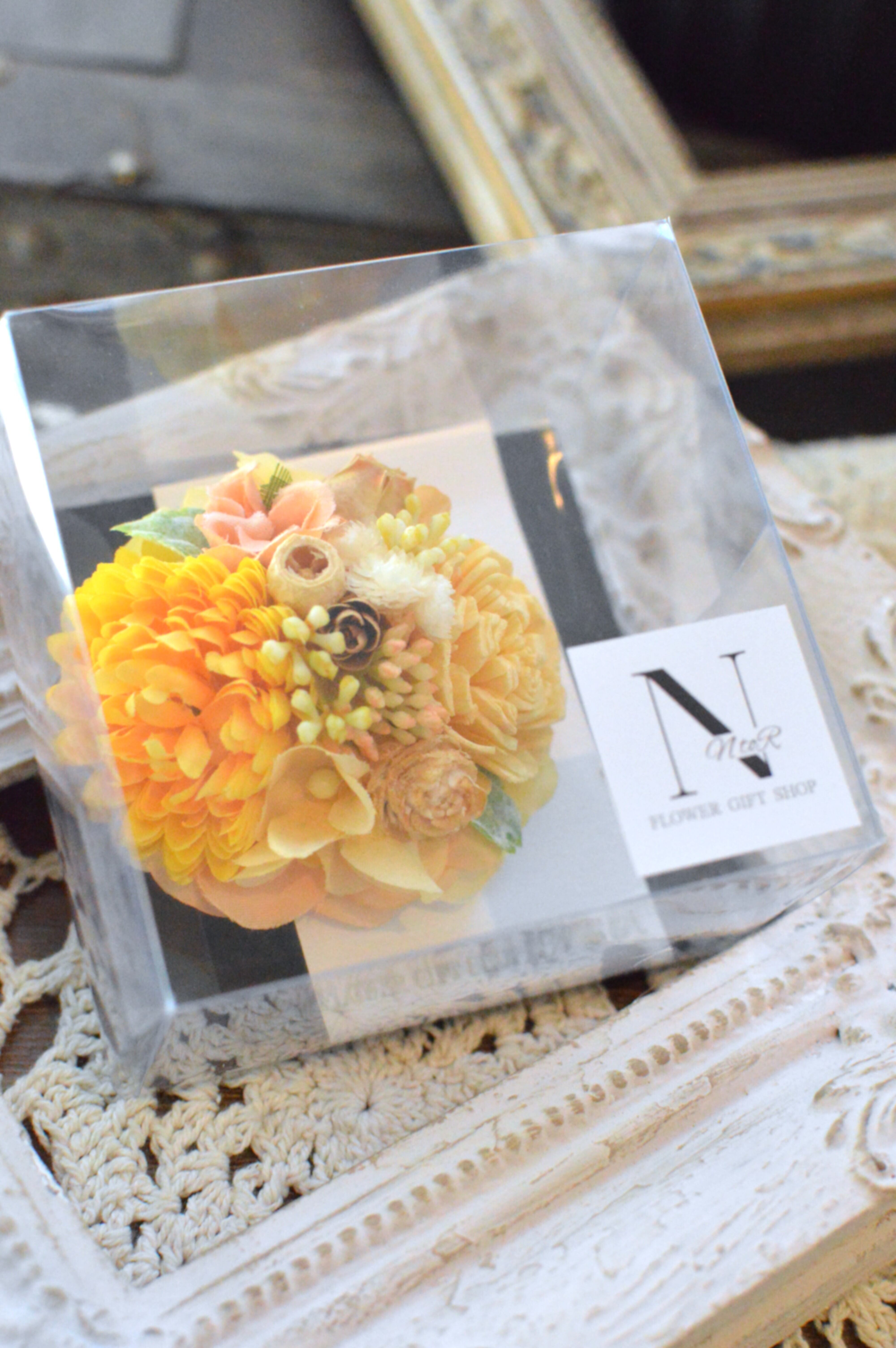 こちらはアーティフィシャルフラワー、ドライフラワーを使用して制作しております。