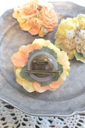 止め金具は真鍮色でピンとクリップの2wayタイプ。